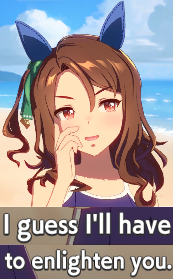 >>558920265Ayabe is such a weak rival. I don't think I've lost to her once other than getting boxed in by mob umas and I've been grinding Opera parents lately.Vodka is more likely to win this race than Ayabe.
