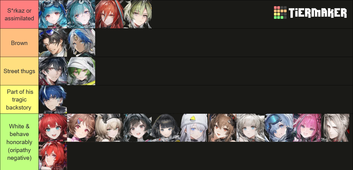 >>558930836>Lowlights favouritesAngelina and Gavial>Popularity picksSurtr, Eyjafjalla, Ch'en>Lowlights self insert12F>Liduke's character HellagurOkay and Aurora....?