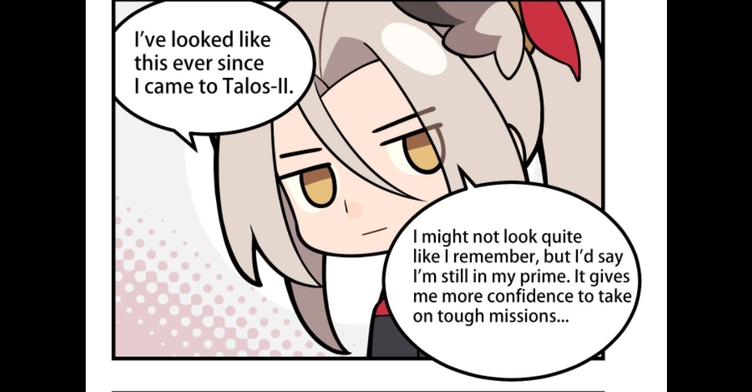 >>558942732Not necessarily. Snowshine does know Aurora from her dreams, but she speaks about her in a vague sense a lot and not so directly. Ardelia is similar, talking about a "girl" in her memories. Laeva is probably the most direct when it comes to talking about her Terra counterpart. But I read the baker chat for this last night and Snowshine is just speaking about the memories she holds, and is talking about how her actual real experiences with the mountains of Talos II are the real thing she values most (beyond pictures and memories, "feeling the wind and ice in your boots", etc). A cool thing about that is at the end of the conversation, Snowshine mentions how she could take you to Kjersch -or their Sami equivalent- so you can experience it too, and then says "as a bodyguard or whatever", which is very similar to how Doctor visited Kjerag for the first time in Arknights with Cliffheart for SilverAsh's 1st event. Aurora and Sharp were your bodyguards for that trip, so that's some big foreshadowing there (or possibly a fun callback..). But anyway the "woods" (I think she says "forest") that she speaks of are the Originium woods from which she came from, where all reconveners are born.