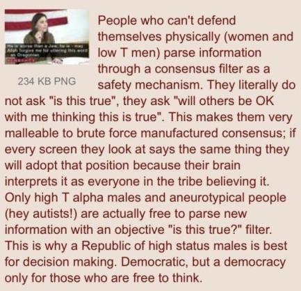 Women's opinions are completely worthless, they don't even understand what they want, I'd say they're not even capable of rational thought.