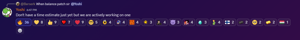I expect a balance patch this week Yoshi