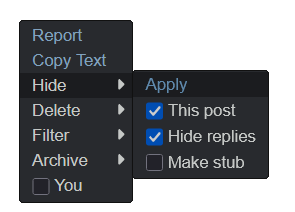 >>559000662Nah, hiding posts is a show of weakness, just like blocking people (other than troon/furry artists) on socials.