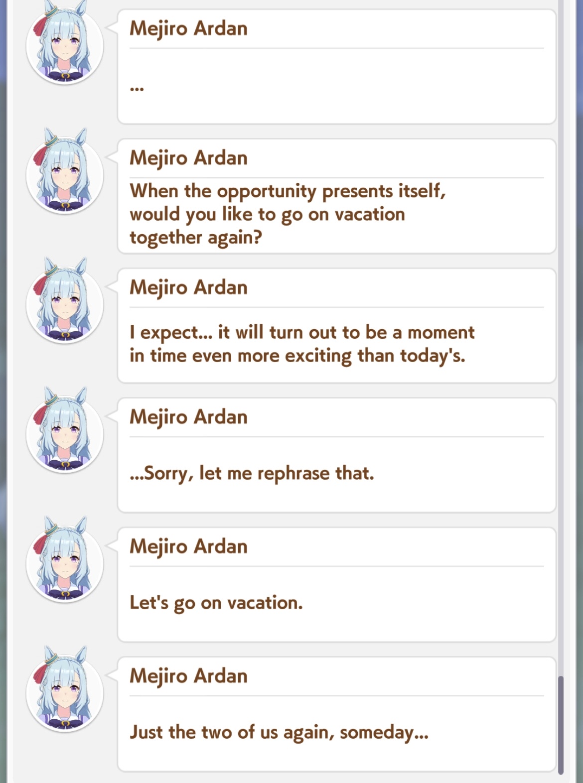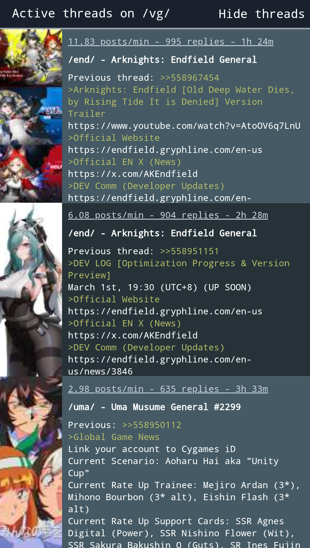 Previous: >>558950112>Global Game NewsLink your account to Cygames iDCurrent Scenario: Aoharu Hai aka "Unity Cup"Current Rate Up Trainee: Mejiro Ardan (3*), Mihono Bourbon (3* alt), Eishin Flash (3* alt)Current Rate Up Support Cards: SSR Agnes Digital (Power), SSR Nishino Flower (Wit), SSR Sakura Bakushin O (Guts), SR Ines Fujin (Wit)Current CM: Aquarius Cup - Tokyo Dirt 1600mMain Story Chapter 5 is out02/18 - 03/01 - Valentine Bourbon & Valentine Flash 3*+Nishino SSR+Bakushin SSR02/18 - 03/01 - The Peak of Confection02/25 - 03/05 - Mejiro Ardan 3*+Agnes Digital SSR02/26 - 03/07 - Legend RacesEarly March - Aquarius Cup - Tokyo Dirt 1600m Left-handed / Winter / Sunny / Firmhttps://umamusume.com/news/100040/https://pages.snep.pw/uma/anni-skill-changes/>JP Game NewsCurrent Rate Up: Almond Eye (3*), SSR Forever Young, SSR Casino DriveNew Scenario "Beyond Dreams" releasedTimeline: https://uma.moe/timelineCygames Webstore: https://webstore.cygames.com/en/umamusume_en/>Thread Clubshttps://rentry.co/umaglobalclublistYou must be E3 (20k points) to join a circle. Apply with /uma/ or /vg/ in your profile or post ID in the thread.>All Guides & Resourceshttps://rentry.org/uma26Game databasehttps://gametora.com/umamusume (Click the gear to switch between JP / global server info)A basic guide for newfagshttps://rentry.org/umaglobalFind networks if your region is blocked from the game or clienthttps://www.umavpn.top/93Seiyuu & Concertshttps://rentry.org/umstUmamusume Birthday Calendarhttps://ウマ娘.攻略.tools/events/birthdayUma Texthttps://umareader.idsmile.xyz/