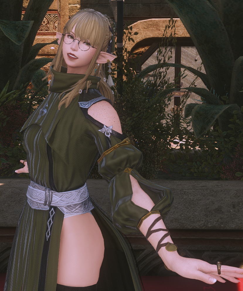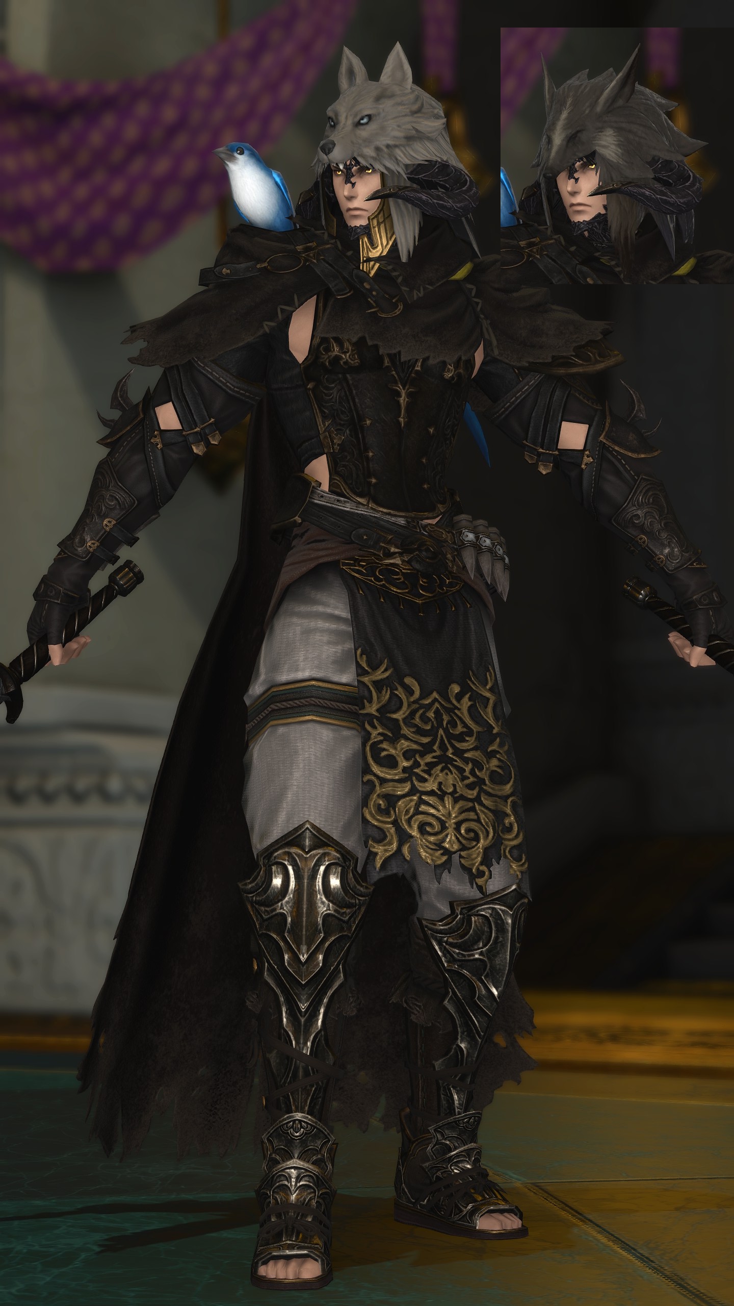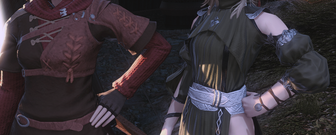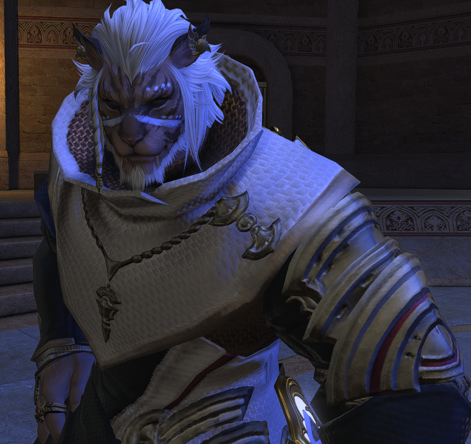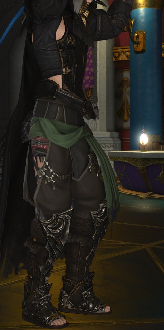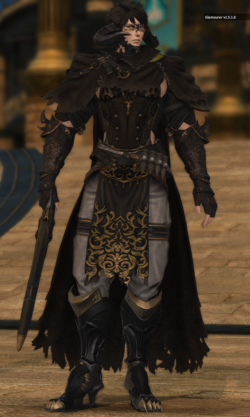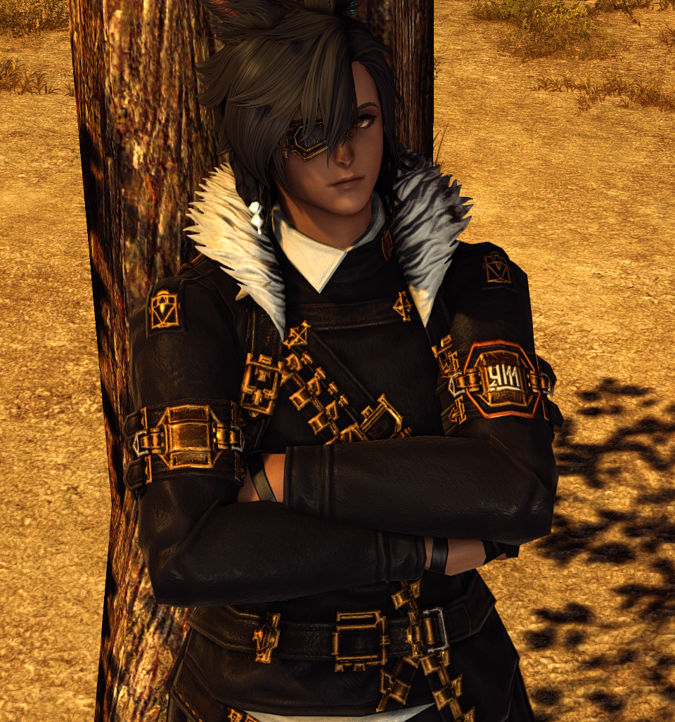 Thanks! I went with the warg/skychaser pelt since I want it to feel like he's been "undercover" in the wilds for a while, do you have any ideas? I used to use the Saotome Hanbo since I like the way those highlight the face, pic, but they're a little too... elegant? also debating using the Manusya greaves for a more "beastly" look but the heels are kinda ehhh
