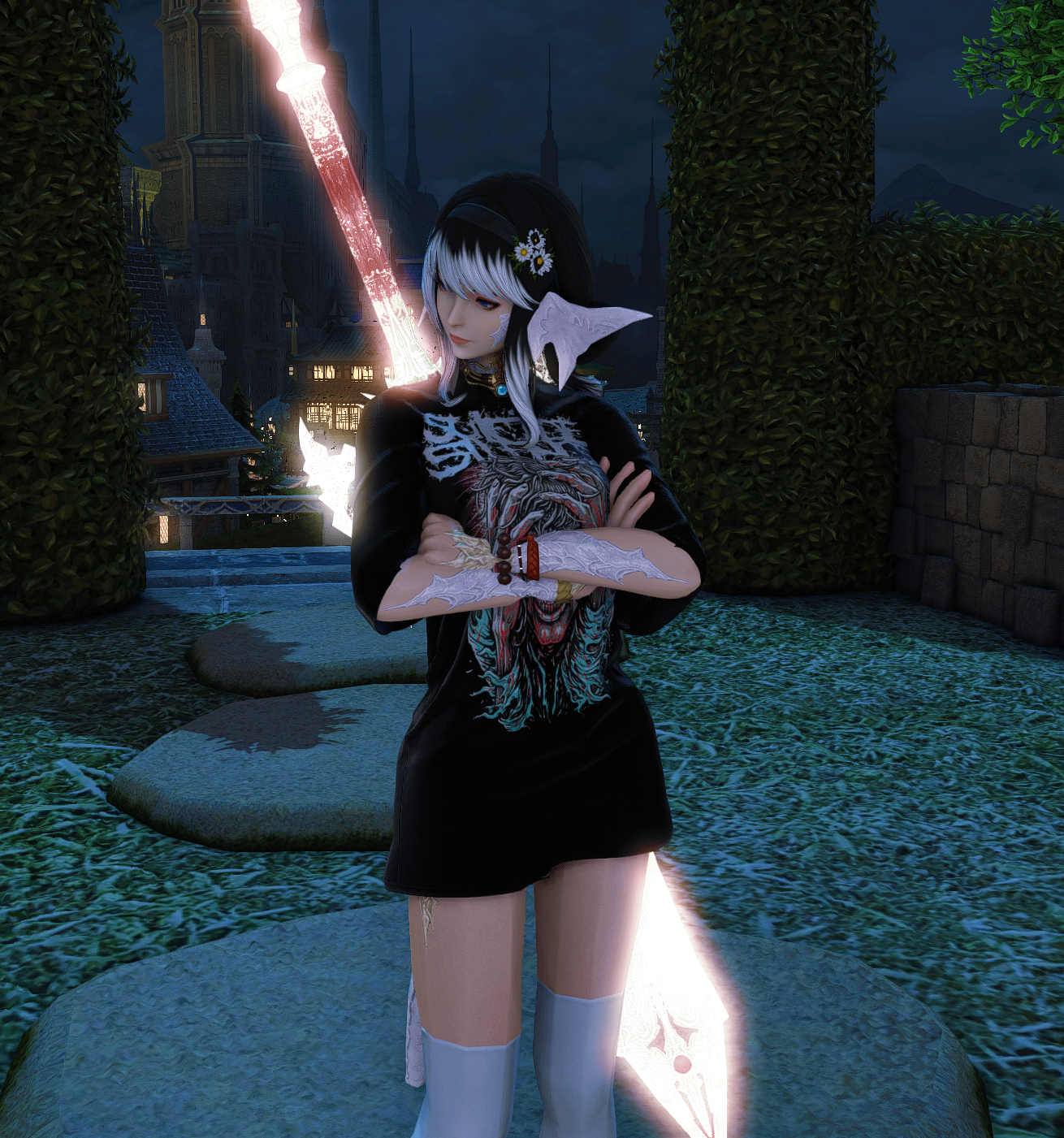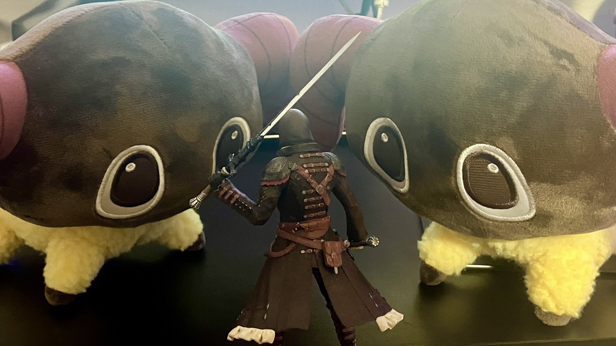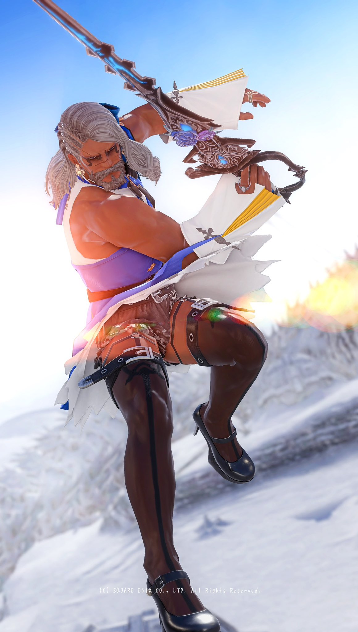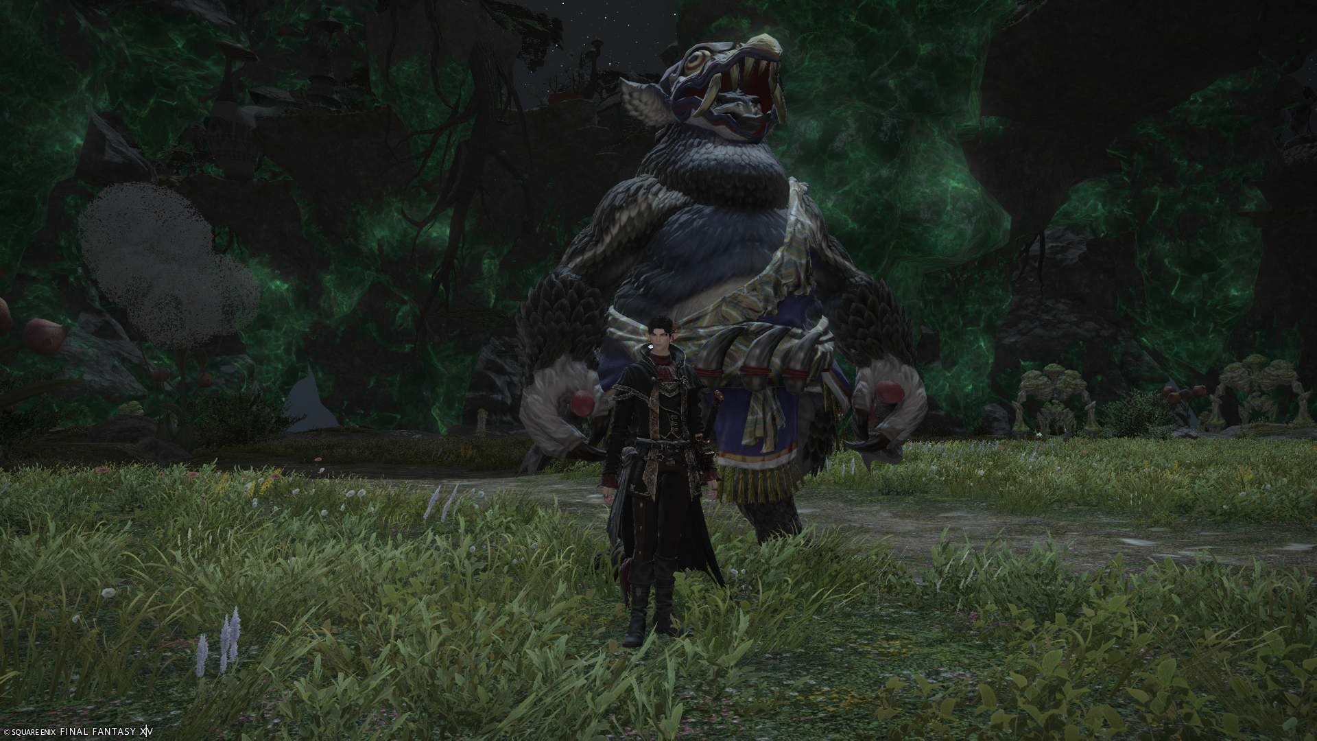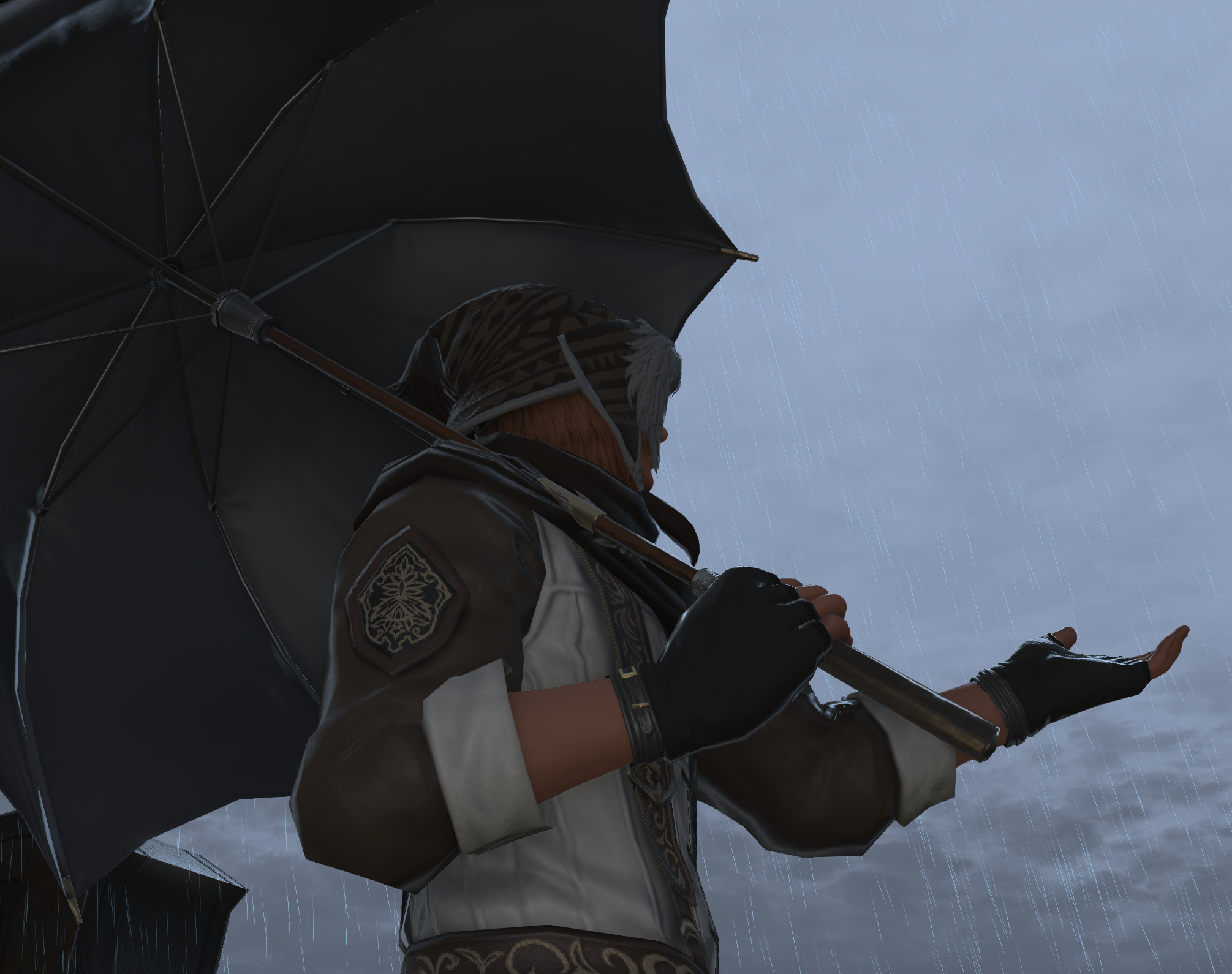 Thanks! I went with the warg/skychaser pelt since I want it to feel like he's been "undercover" in the wilds for a while, do you have any ideas? I used to use the Saotome Hanbo since I like the way those highlight the face, pic, but they're a little too... elegant? also debating using the Manusya greaves for a more "beastly" look but the heels are kinda ehhh