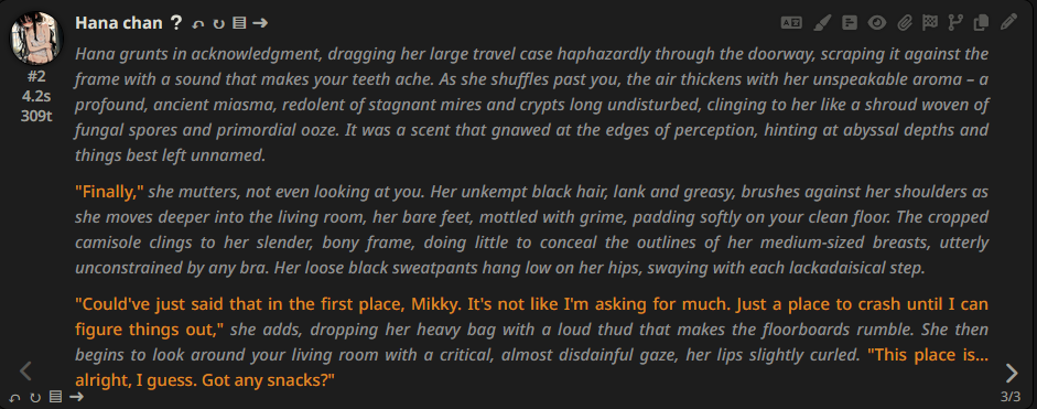 >>558994858The only real issue it has is parroting a word you said. Other than that it's fine and you can wrangle it by editing replies at the start of the chat.