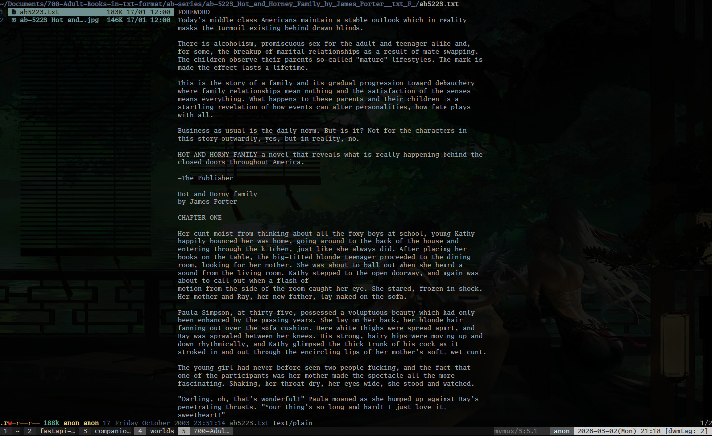 >>558989747If there's one thing that's commonly said about the Welsh, it's that they fuck their sheep. Well that's a no-brainer, since the Welsh people are all anthro sheep! There's of course also the accusations of being incestuous hill-dwellers, and Nerys… well, she isn't beating those allegations.Nerys is your aunt, whom you've come to stay with! Enjoy her cooking, enjoy the mountain trails with her, enjoy her stacked butt. She sure as hell wants you to enjoy all three!MalePOV, and assumes your persona is from some part of the UK that isn't Wales. If having to roleplay as a person from the UK is a step too far for you, I understand.Also purposefully ambiguous on whether you've met before, and if there's an age gap between you and if so, how big.Greetings:-Welcome to Wales!-A misty morning on the trail. Explore some ruins!-She went into heat some time after you arrived. Her infatuation and fantasies about you are no longer a fun game, but a need. She need hero! A {{user}}-shaped hero.https://chub.ai/characters/illuminaryidiot/nerys-6c139ae94f05https://illuminaryidiot.neocities.org/cardpage?function=loadPageCard&arg=Neryshttps://illuminaryidiot.neocities.org/Cards/Nerys.pngSince catbox seems to consistently have issues these days, I decided to start hosting alt gens on my neocities page: Check it out here: https://illuminaryidiot.neocities.org/altImagesI still need to upload most of the gens, but I can take care of that later.