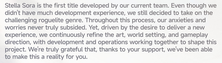 Anyways, still playing Stella Sora because I like the writing direction. Gameplay wise there could definitely be improvements, but numbershitting isn't going to change my mind on whether or not I want to continue playing this game.
