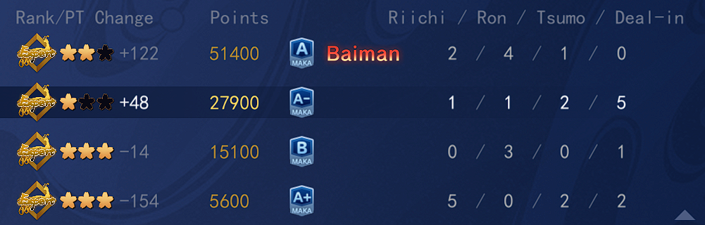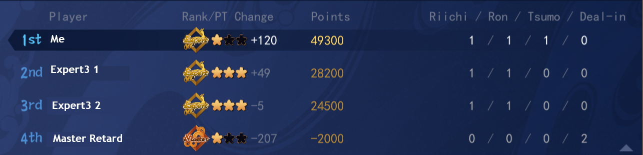 >deranking kekspert gets handed out free tsumo hanemans thrice in a row, on his dealer turn raping everyone in the tablevery cool, would've been worse if I didn't win any hands kaguyahime-6.png