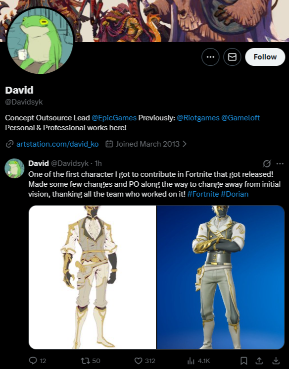 >professional artist account liked one of my shitty fortnite pinup rendersI feel kinda honored