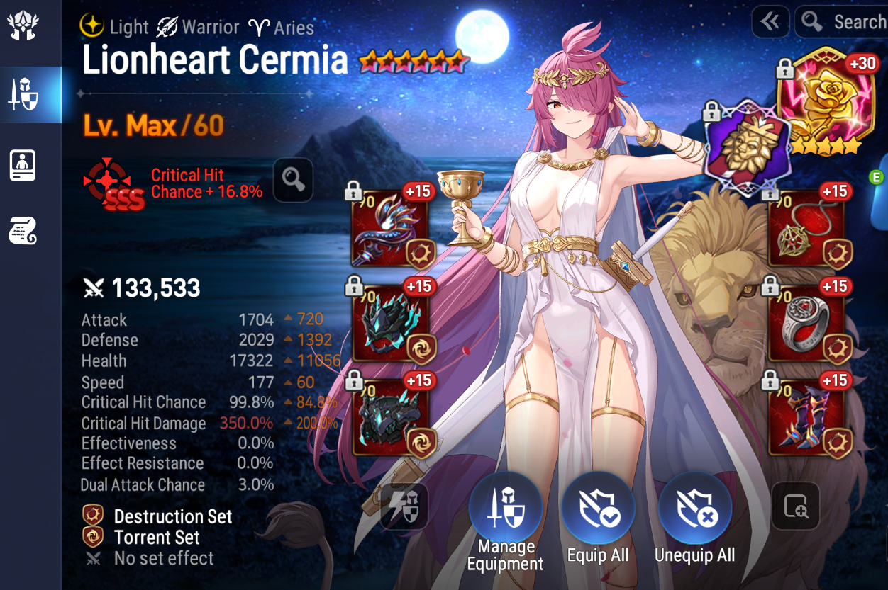 >320 speed 100% crit rate 300 eff spolihow the fuck how does this guy have this insane gear????