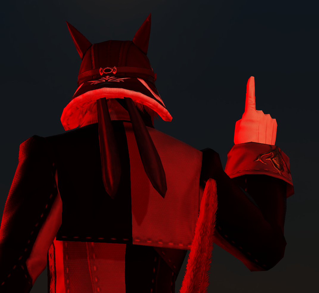 >>559031550maybe if you make the GGER an actual acronym like gay gamers of eorzea roegadyns or something but that seems like a lot of work just to risk getting a ban and strike on your account>>559032074more than likely since it scales you to 100