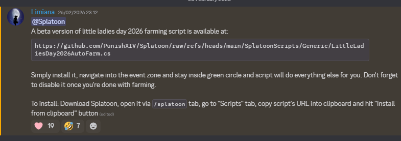 >Patch 7.41 Noteshttps://na.finalfantasyxiv.com/lodestone/topics/detail/fa89e48b03a6bf6deac50a23fdfc39f7df64fb2a>Little Ladies Day Feb 26 to March 12https://na.finalfantasyxiv.com/lodestone/special/2026/Little_Ladies_Day/ivf88rc2gm>Resourceshttps://rentry.org/xivgresources>Meetsups• March 6, 6:00 PM EST | Jenova Goblet W18 P43 | Mario Party Salty Bets >>558176762• March 13, 4:00 AM PDT | Balmung, Eulmore | Live Letter Meet >>558765025 Previously: >>559014492