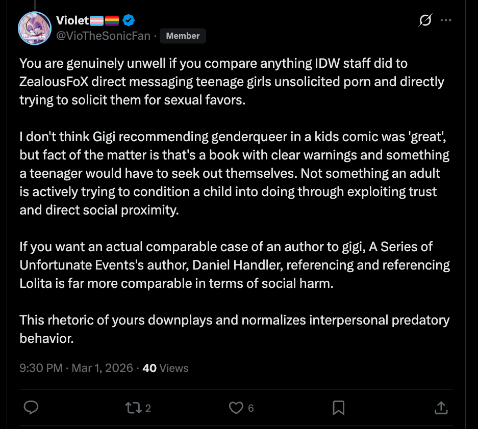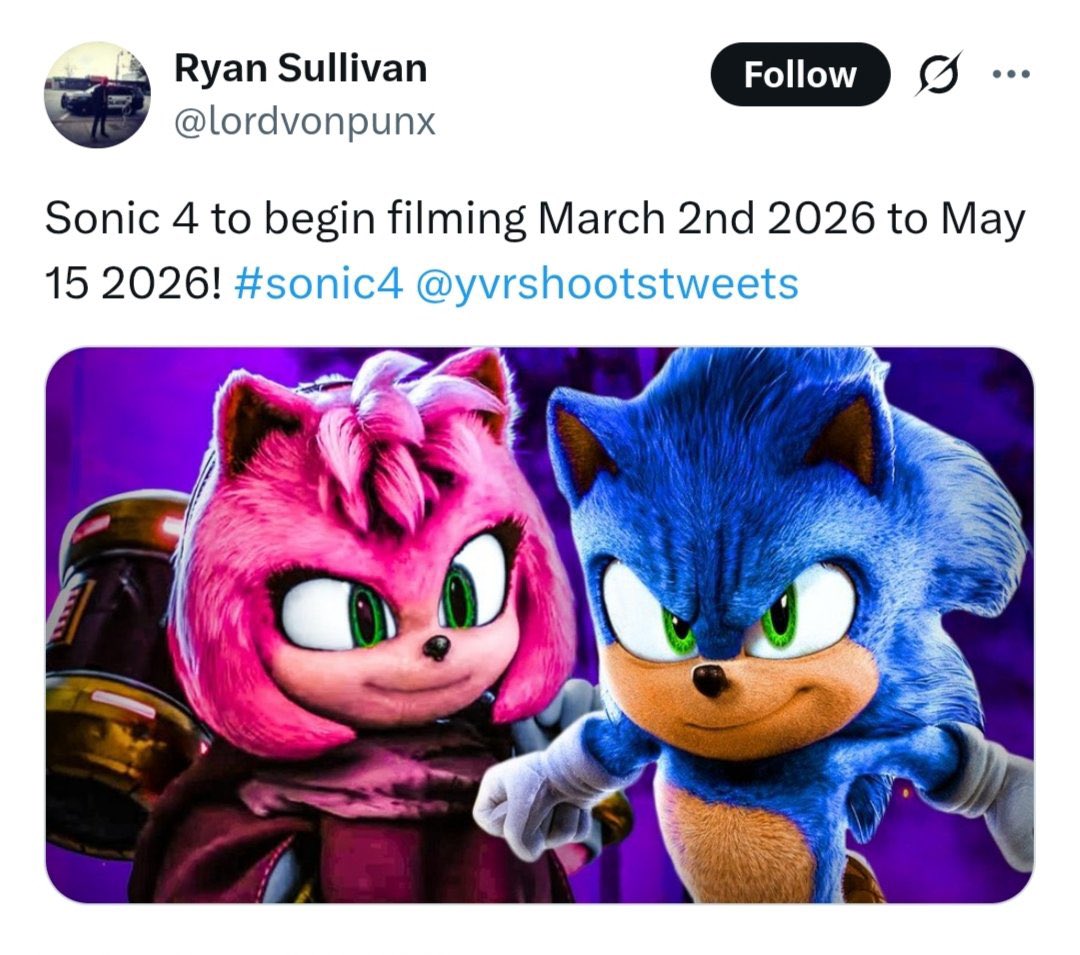 Welcome to Sonic the Hedgehog General! Here we discuss ALL things Sonic!/sthg/ #9113 - Dreamy Gamma Edition==NEWS==>Sonic the Hedgehog's 35th anniversaryhttps://www.sega.com/sonic-the-hedgehog?tab=35th-anniversary>Sonic the Hedgehog 4 to release on March 19, 2027https://x.com/SonicMovie>TailsTube #14 - Bonus Laphttps://youtu.be/I6rrciMAM3U==Comic Release Dates==Sonic the Hedgehog: Sonic Racing: CrossWorlds - 04 March 2026Sonic the Hedgehog #85 - 11 March 2026Sonic the Hedgehog #86 - 08 April 2026DC x Sonic the Hedgehog: Metal Legion #1 - 06 May 2026Sonic the Hedgehog #87 - 13 May 2026Sonic the Hedgehog x Godzilla #1 - Summer 2026Sonic the Hedgehog: 35th Anniversary Special - 15 December 2026==GENERAL INTEREST LINKS==https://rentry.org/sthglinks>Milestone pastebin:https://pastebin.com/LJCfZhY4>Sonic Game/Mod Recommendation Spreadsheet:https://rentry.org/sthglinks#sonic-gamemod-recommendation-spreadsheet>Perfect System Collection:https://rentry.org/sthglinks#perfect-system-collection>Sonic comic scans:https://rentry.org/sthglinks#comics>Sonic shows:https://rentry.org/sthglinks#shows>SAGEhttps://sagexpo.org/>SHChttps://shc.zone/>#10000 Projecthttps://pastebin.com/Fb8Bt4ru>/sthg/ booru:https://sthg.booru.org/>/sthg/ OC info:https://sthgoc.tumblr.com/archive/>/sthg/ CyTube:https://cytube/r/sthg>/sthg/ Pixel World:https://ourworldofpixels.com/sthgPrevious zone: >>559009617Thread theme: https://youtu.be/CyWCpFFovw0