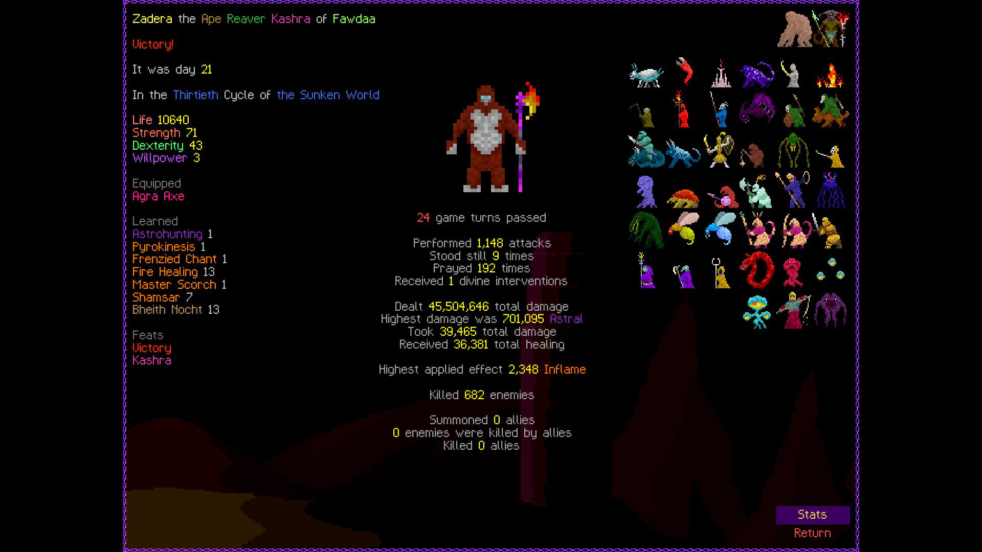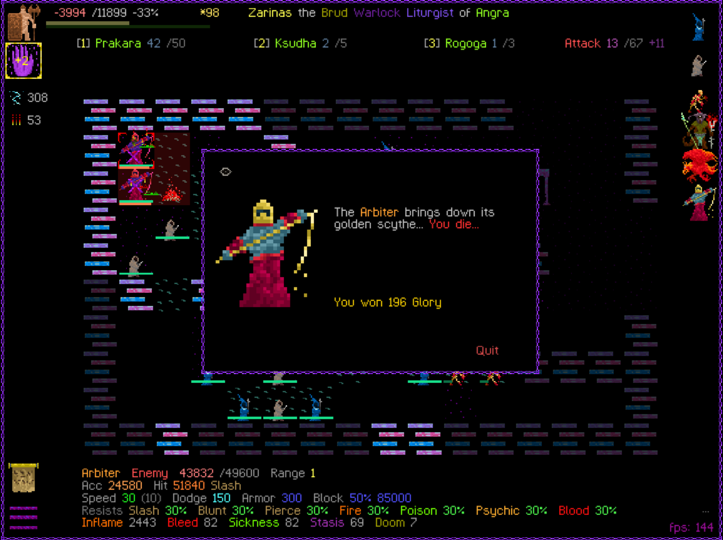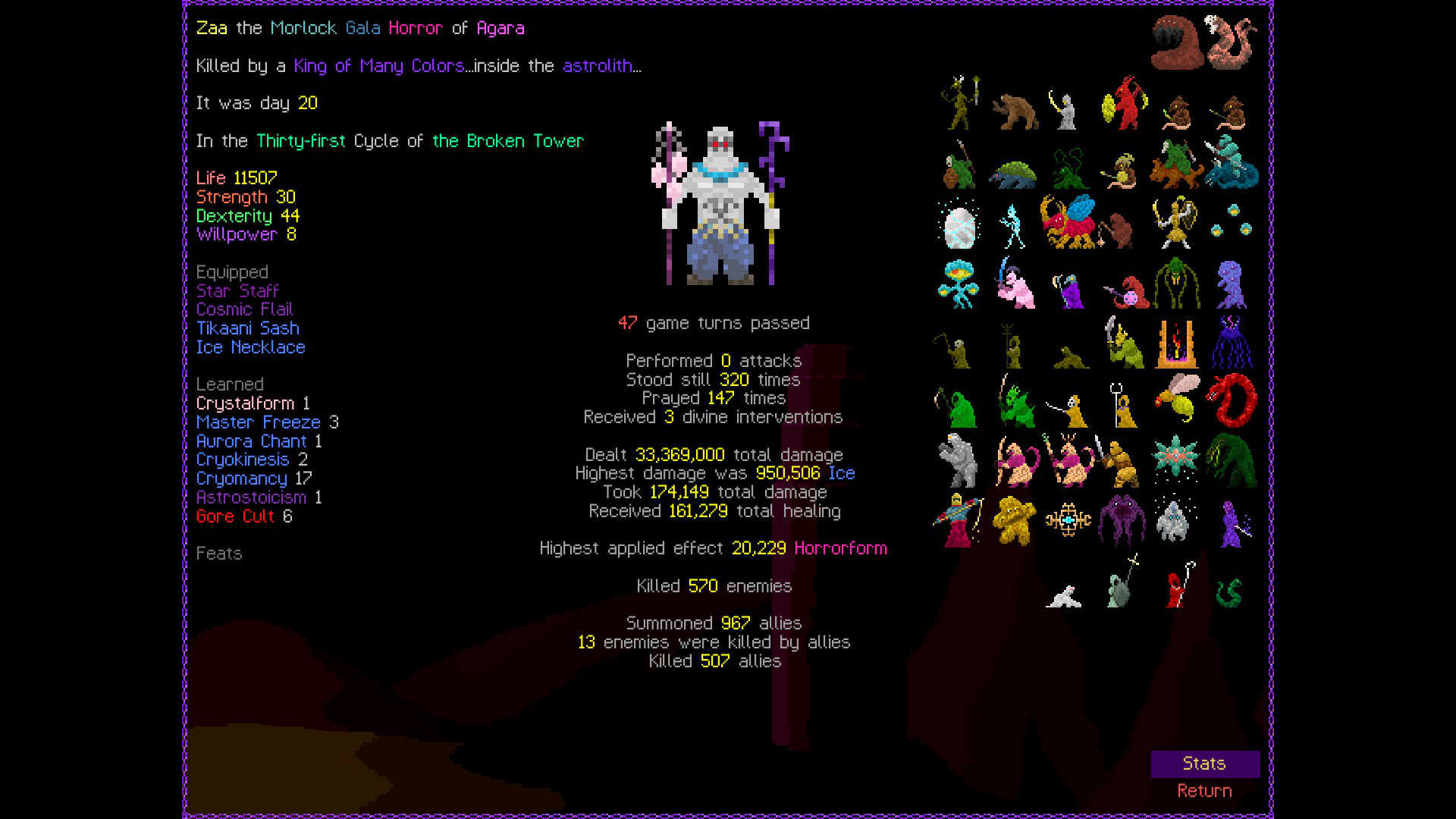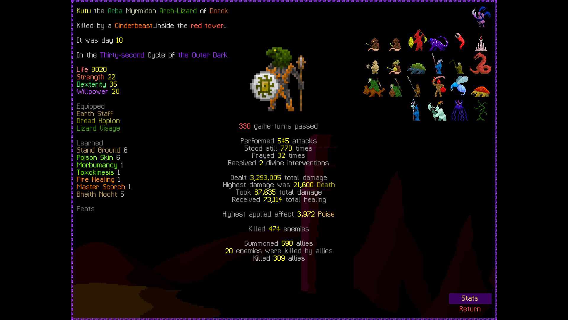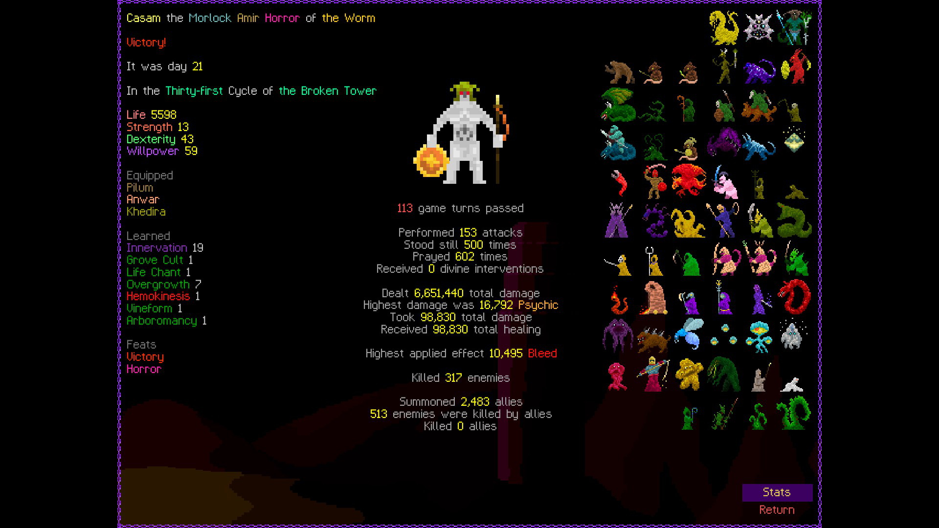 So it ended up being perhaps a bit more generic than I liked. I was trying to get cute and figure out a way to make Myrmidon viable because of that sexy shield she has, but it ended up being too painful and clunky. Also I gotta say WTF is that damage? That was the quickest final boss fight I've seen on cycle 32. 6000 repulsion, Jade Veil, and loincloth is really enough to dome him like that? My last fucking run took like 45k charge to finally finish him off.