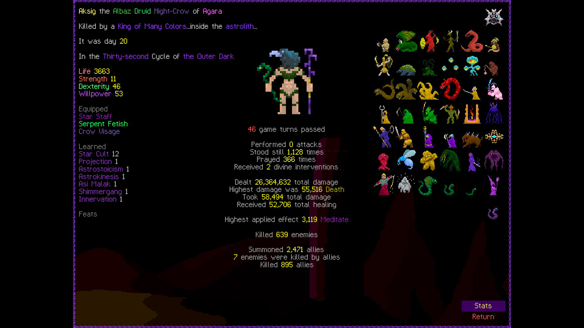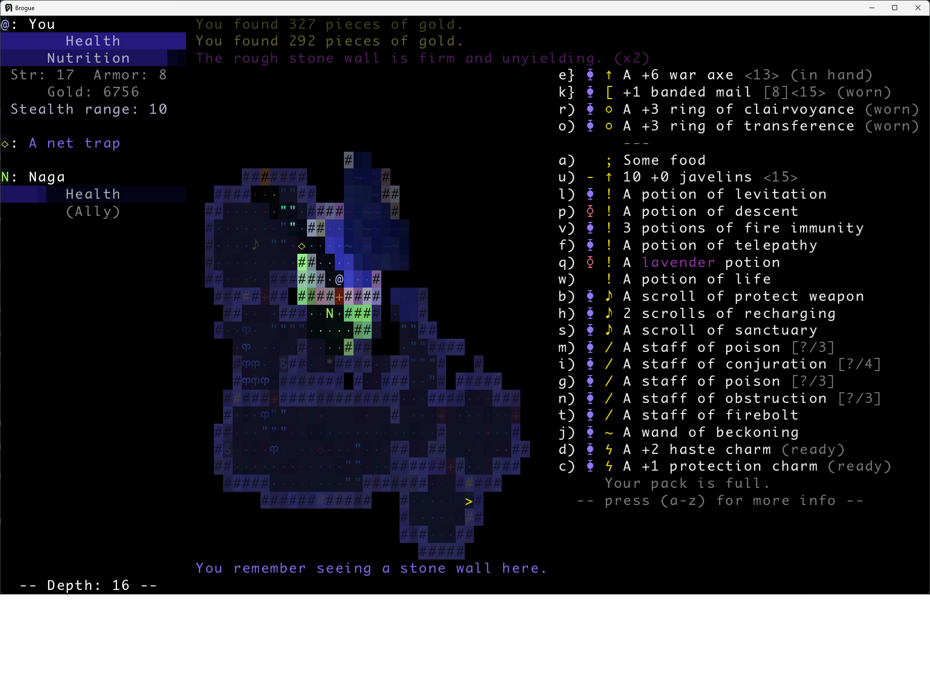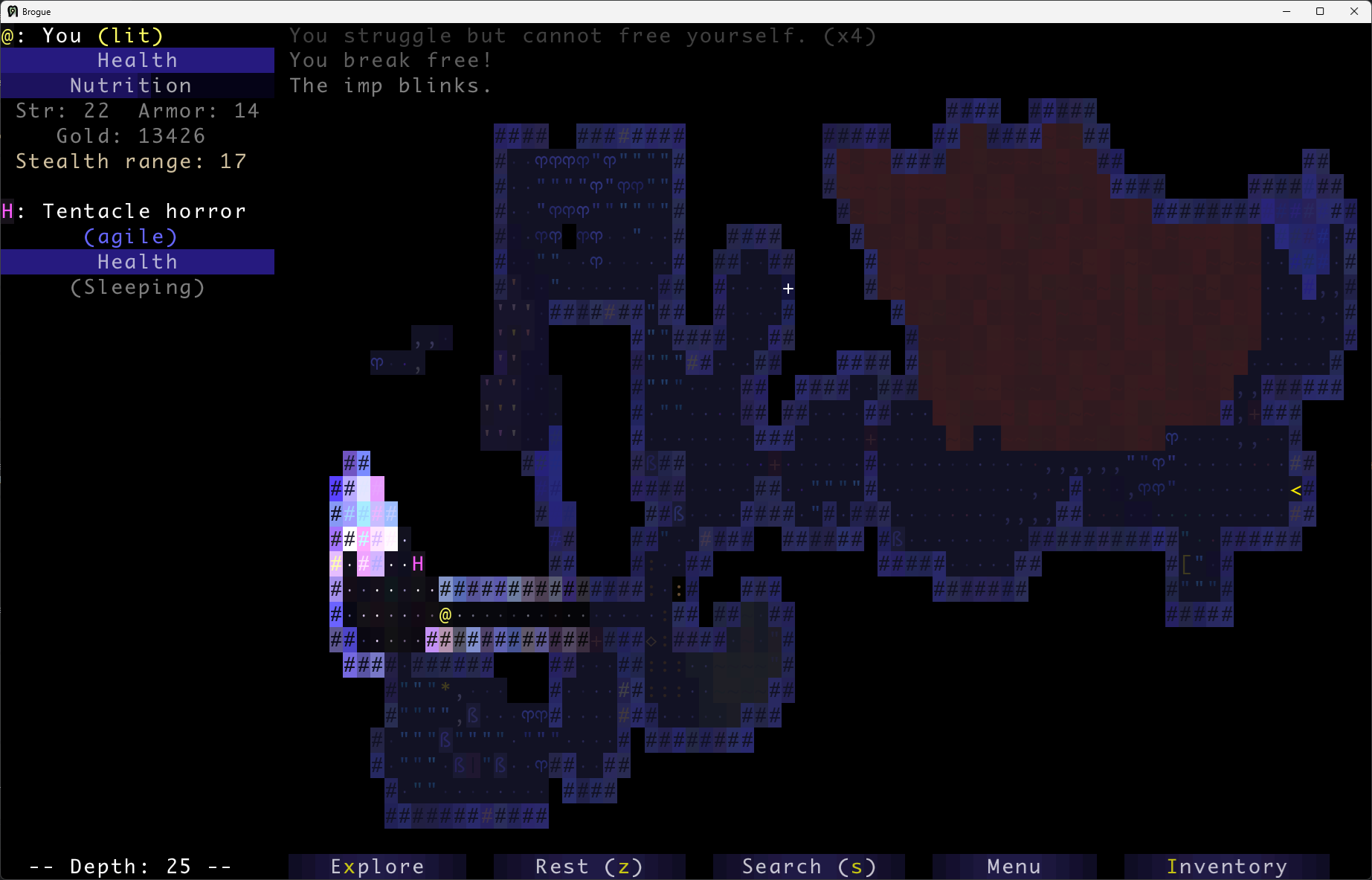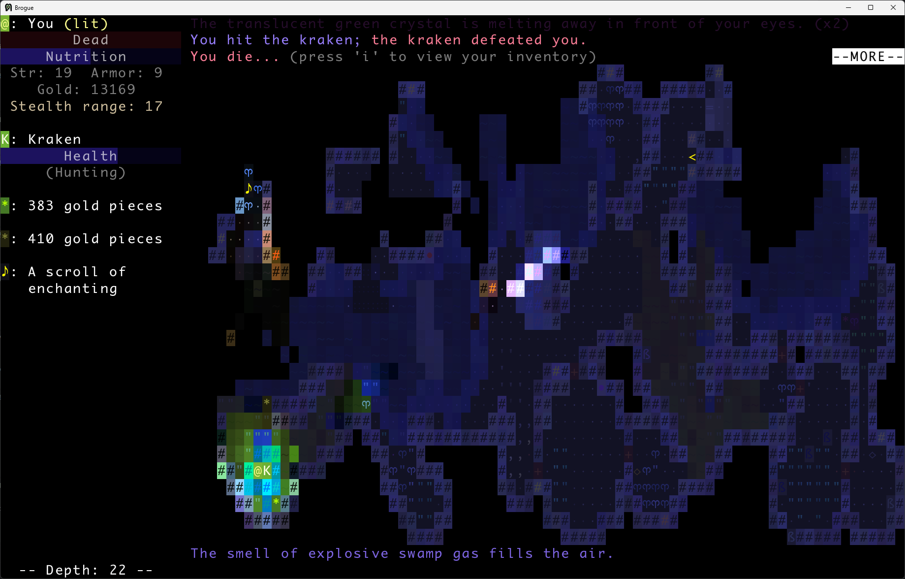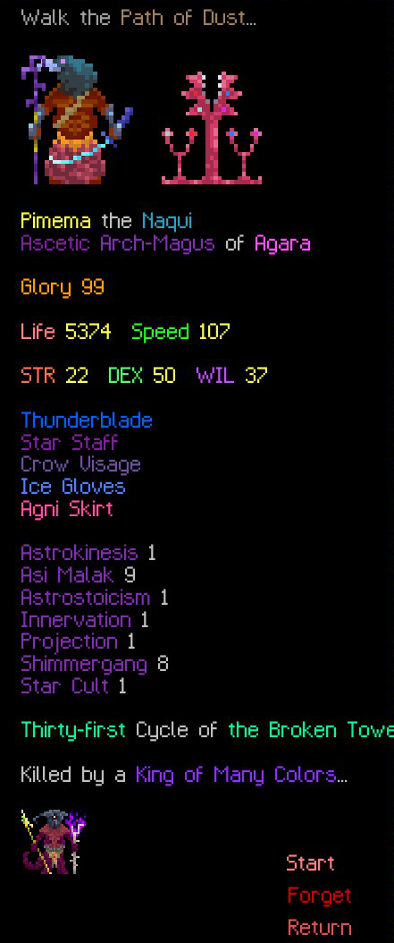 Brogue had a bunch of things that until the very end were a pain in the ass (any water mob, early bats, anything that appears only at the end game) but a lot of stuff that was giving me difficulty for a while could be worked around (making sure to enchant support items, better IDing, parking oods upstairs) and in the end I got fairly consistent and went deep on my last 4 runs. Infra Arcana on the other hand seems designed from the ground up to be unwinnable. I have no idea what I'm supposed to be doing and half the advice you read is "go full stealth with Rogue and hope you never have to fight anything".