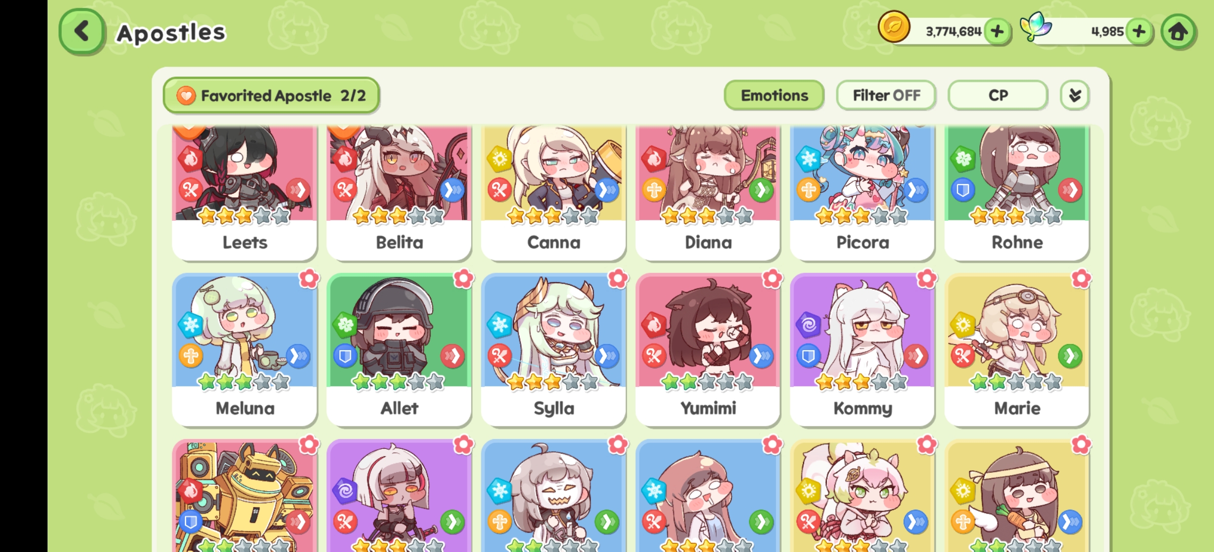 I barely have any Calm apostles, actually struggled with the dig site because I couldn't even fill a full team except for the shit you start with (Espi, Layze, Patula and Melona)