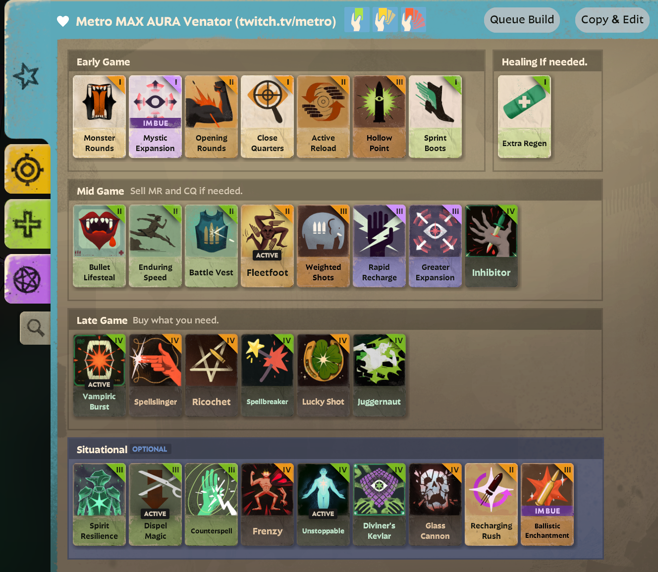 People earlier were saying Metro is good. Is this Venator build bait? It's not some game losing dogshit like this one Goo Bomb build Viscous I played, but no CDR for ult, extra regen over healing rite, nothing in this build that actually helps him farm considering this build recommendation makes his 1 and 2 too long CD and too low impact for farming.I thought, generally, M1 ricers like Wraith or Mirage wanted to blitz a farm item like Tesla/Ricochet/Cultist or some Spirit investment for the same end goal.