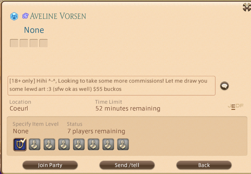 >>559070379During Endwalker Square released a Datacenter dubbed "Cloud" to test out cloud-based servers just in case, everyone joining them got a free Story Skip to EW plus Job Skips to every job (of course, only to be used in this new Datacenter). The DC was up for a week before being permanently removed as it was just to test things out, and it was very fun /xivg/ wise because everyone made a character there aka a Cloudster, to just chill and go nuts in there, as there was 0 moderation.>>559070375People bashing on you but +1, communication is important and that person is bitching about a literal XIV dungeon, as a veteran player on an alt.