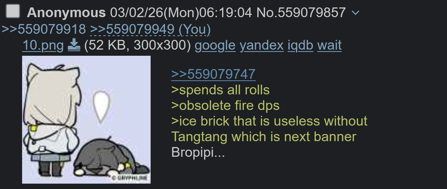 bro, nothing is worse than your "Waifu" being unusable in endgame. Heck even in overworld if someone clears enemies faster, I'd use them over the waifu. I'll forever be a metafag