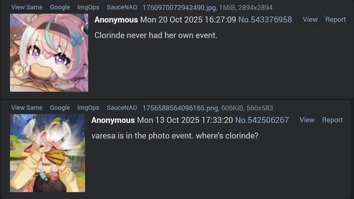 >>559071541And by "others" you mean hoyo who glues two characters together and makes them yap only about each other all the time and it's crystal clear they are blatant fujobait? I don't need fujos to see which pairings are pushed by hoyo (haikaveh, wriollette, illuflins) and which pairings are just delusional babble (kaeluc, zhongchi, varflins)