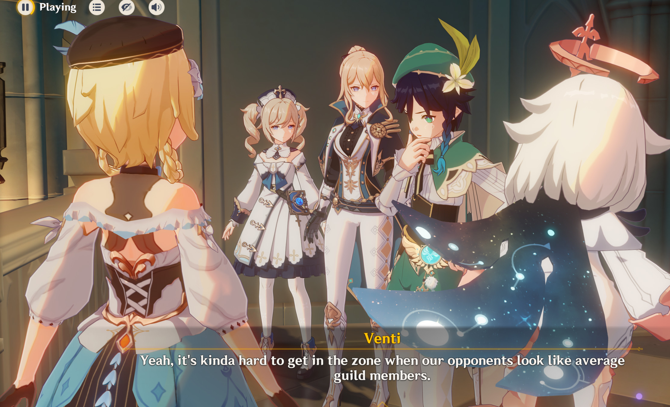 >>559070416>Cutscene starts with Venti mentioning that this place wasnt designed for sitting>After the cutscene ends theres a prompt for sitting down???