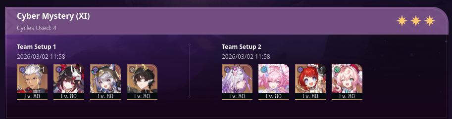 found this on twitter about recommended line ups>mfw no mention of ACKeron lmao>mfw no mention of Feixiao or FuA comps lmao>mfw insane JY/Saber/Aglaea sneak when nobody is actually clearing end game with them without heavy eidolon investment>mfw insane Therta sneak when Anaxa comp mops the floor with her>mfw Dhalia not being on the first slot for the Break comps and even trying to suggest you can replace her with RM as if she wasn't the only carrying the entire archetype on her back