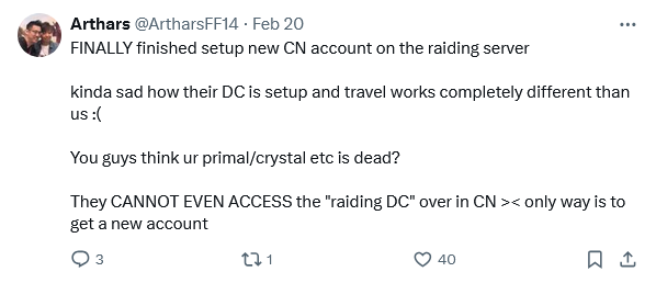 >>559079994>>559080220>Artificial congestionWhy would they do this? Shadow bringers and Endwalker both had higher numbers in player count.Why is it they would implement this? Is it to impress game journalists?>>559080496>Fool (you) But why? The people who are already here, are the ones who are already "bought in" so to speak