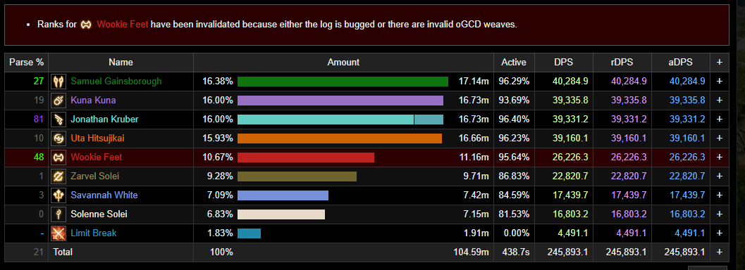 >>559094821>trying to obfuscate wookie being caught cheating with cheat plugins to the point that fflogs flagged him with this made up muffy dramadoes the pvp clique REALLY does the fl clique REALLY