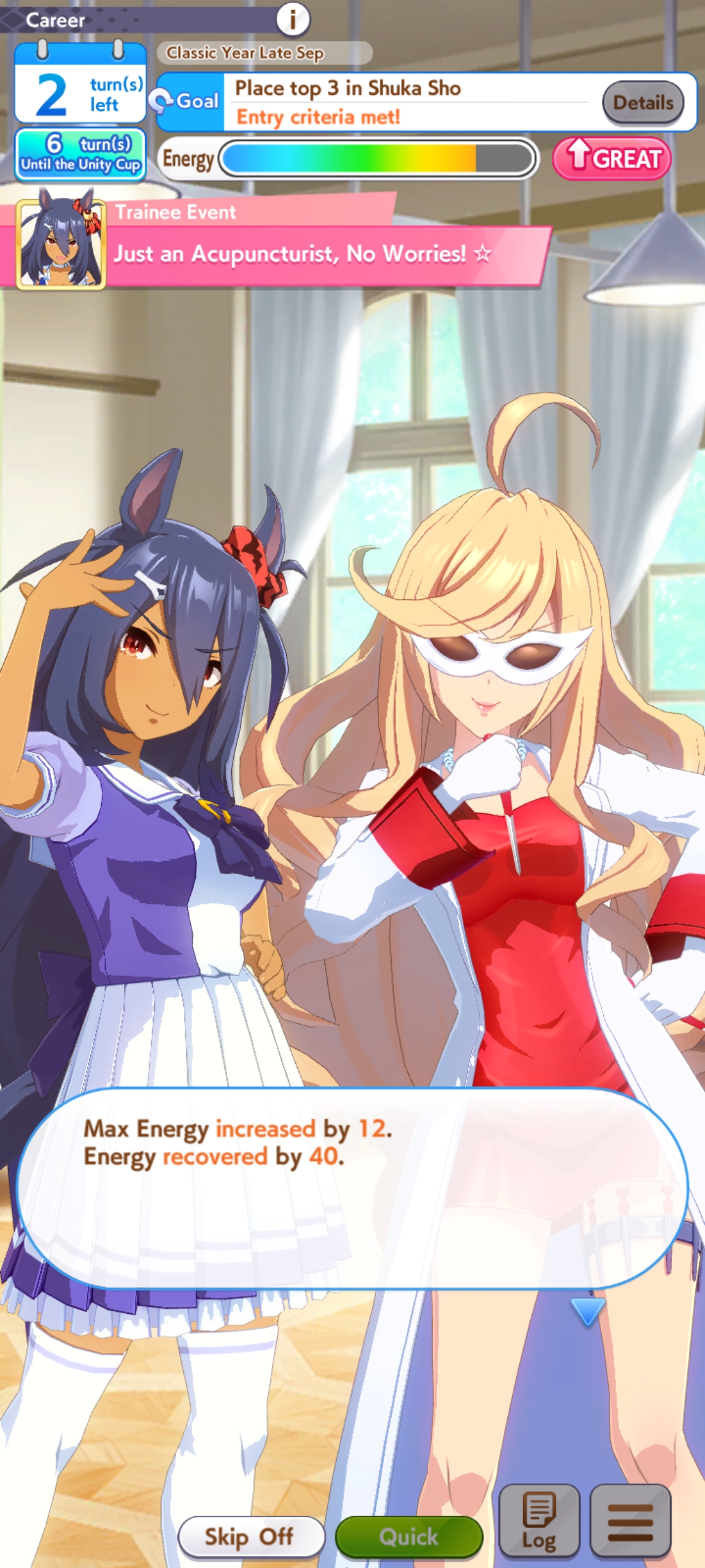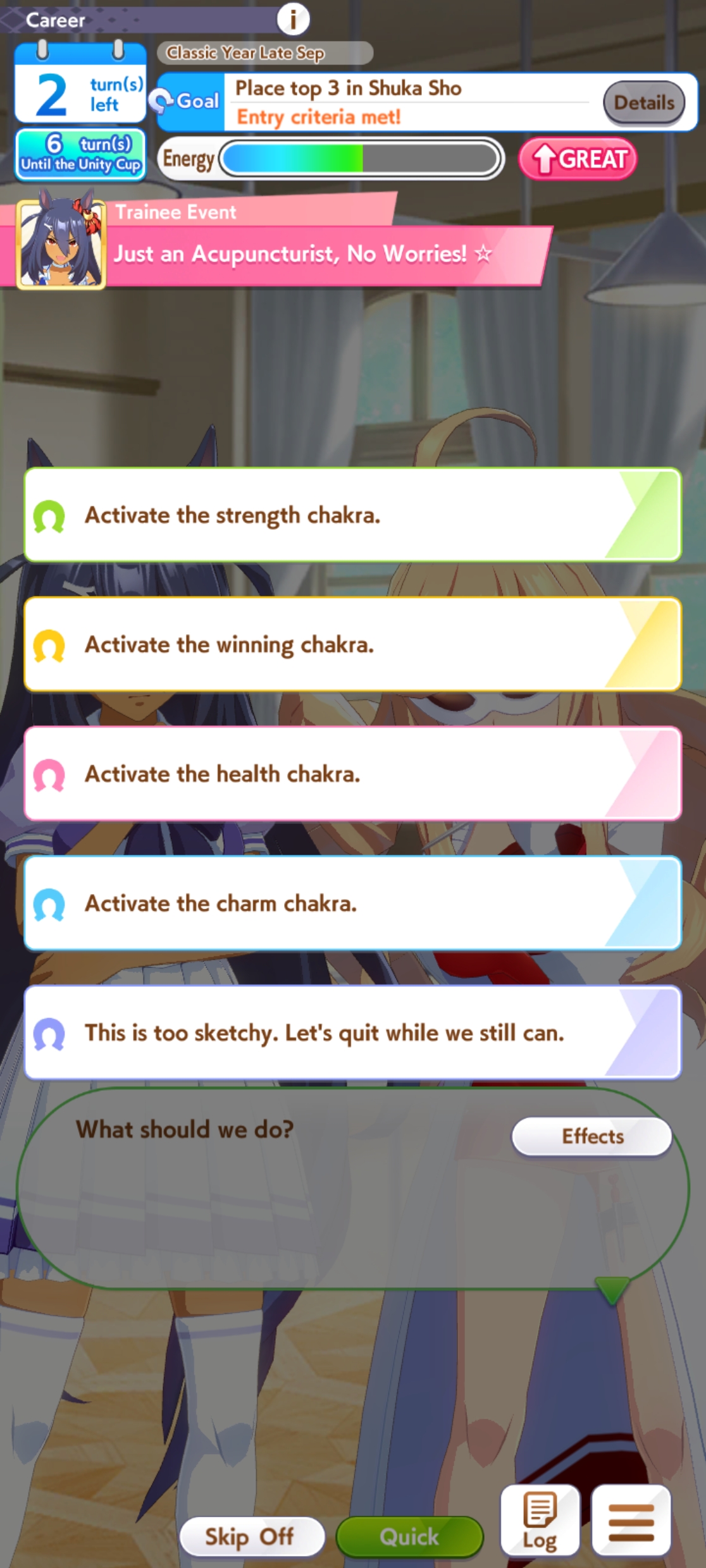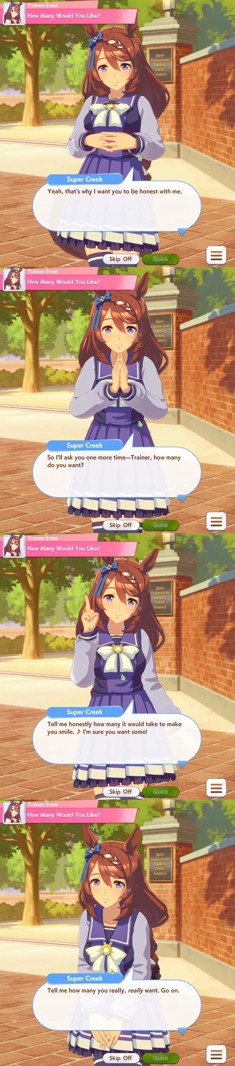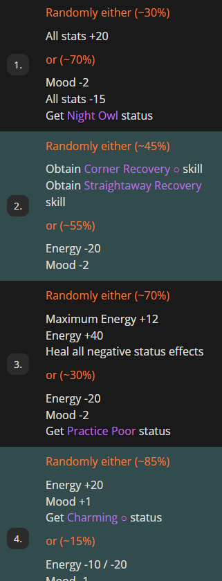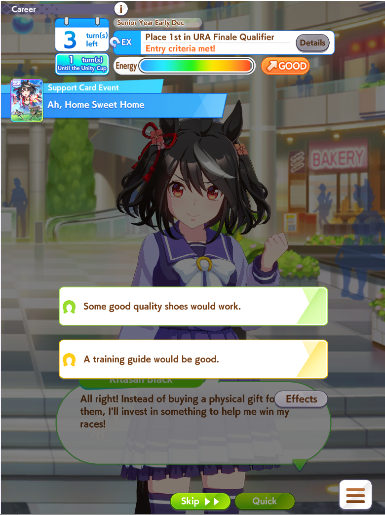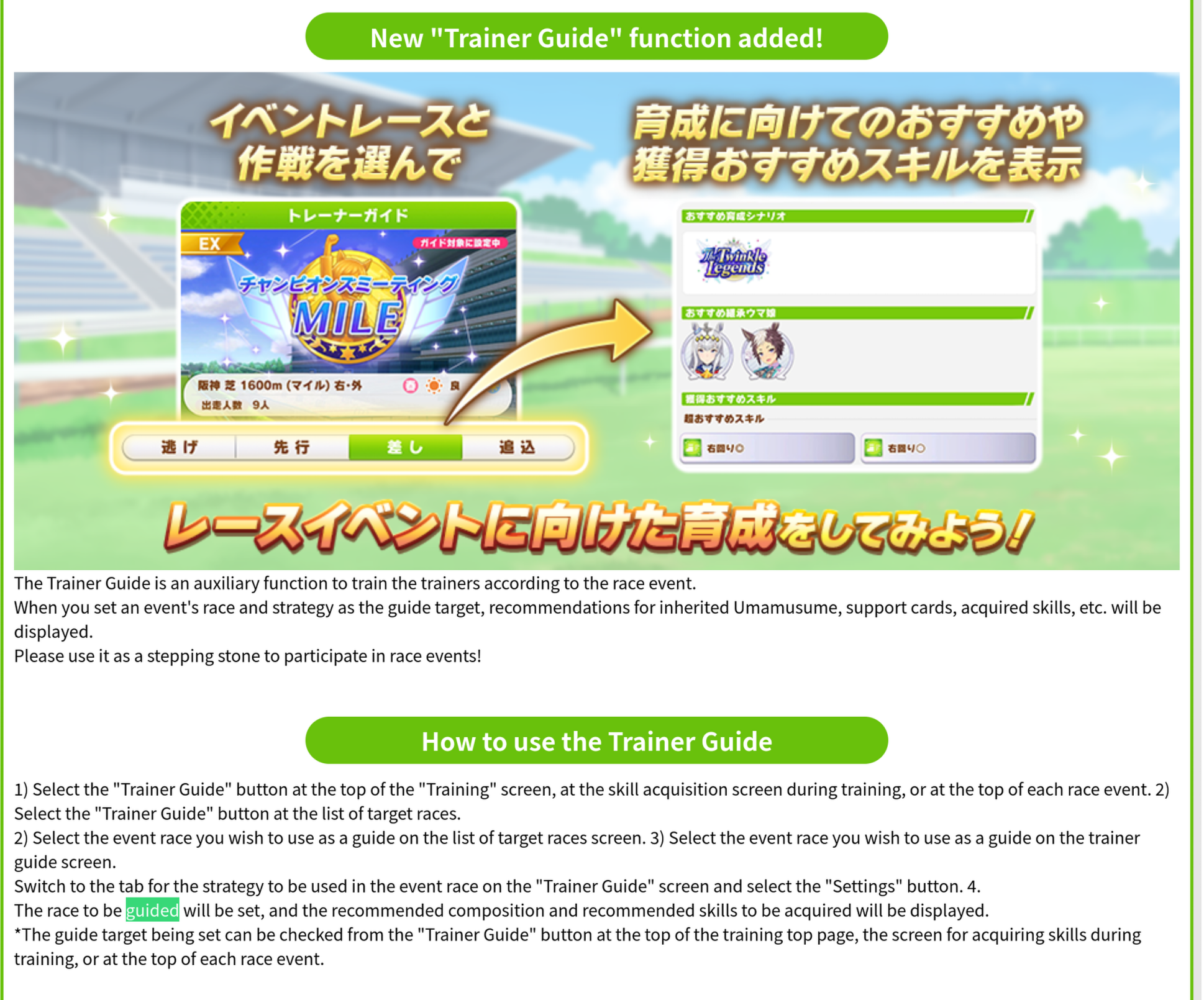 >>559111859>>559111859>>559112224I can't find when auto careers were added, but it isn't in any of the 4th anniversary news which is when the announcement said the "Guided Career feature" was from.Since we already have the event outcome display I assume that they just translated it weirdly, because I also found another feature added in 4th anniversary that from the machine translation sounds more like guided career to me.https://umapyoi.net/news/2441Here is the news post for the event outcome display which the machine translation calls "Choice Effects Display"https://umapyoi.net/news/2386