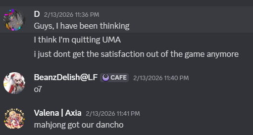 All these discordposting is brought to by Uma&Co seething that they're being made fun for owning a server