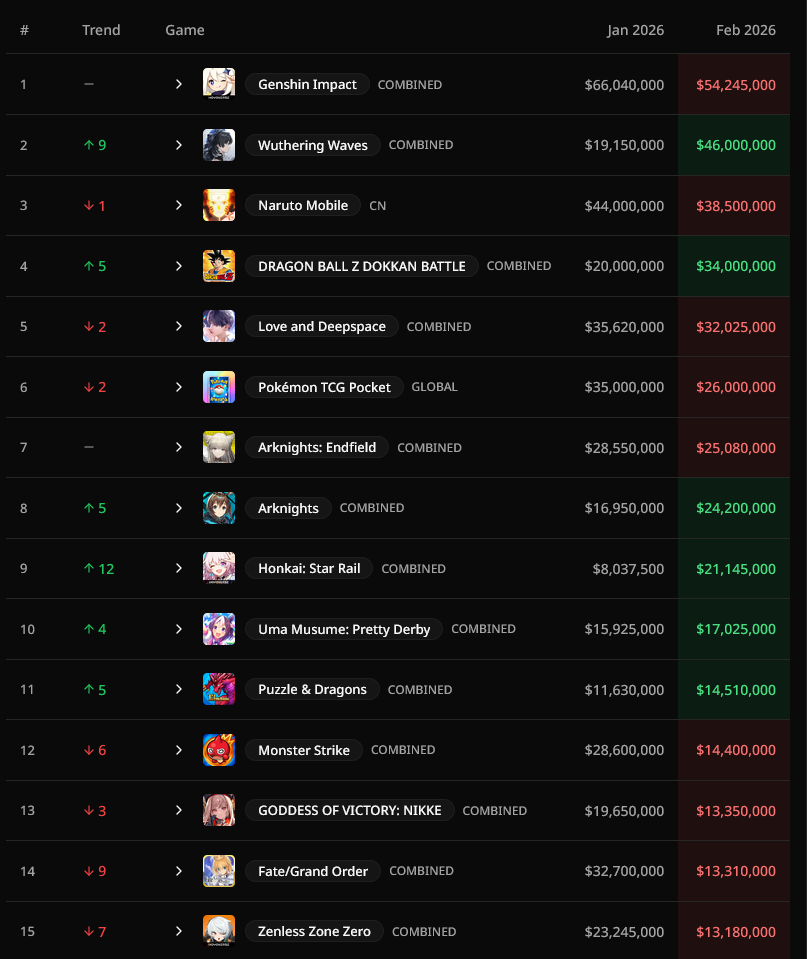 >2nd half of 2023 and 1st half of 2024, Genshin and HSR were permanently in #1/#2 spots interchangeably doing 90m+ monthly each>now...What went wrong