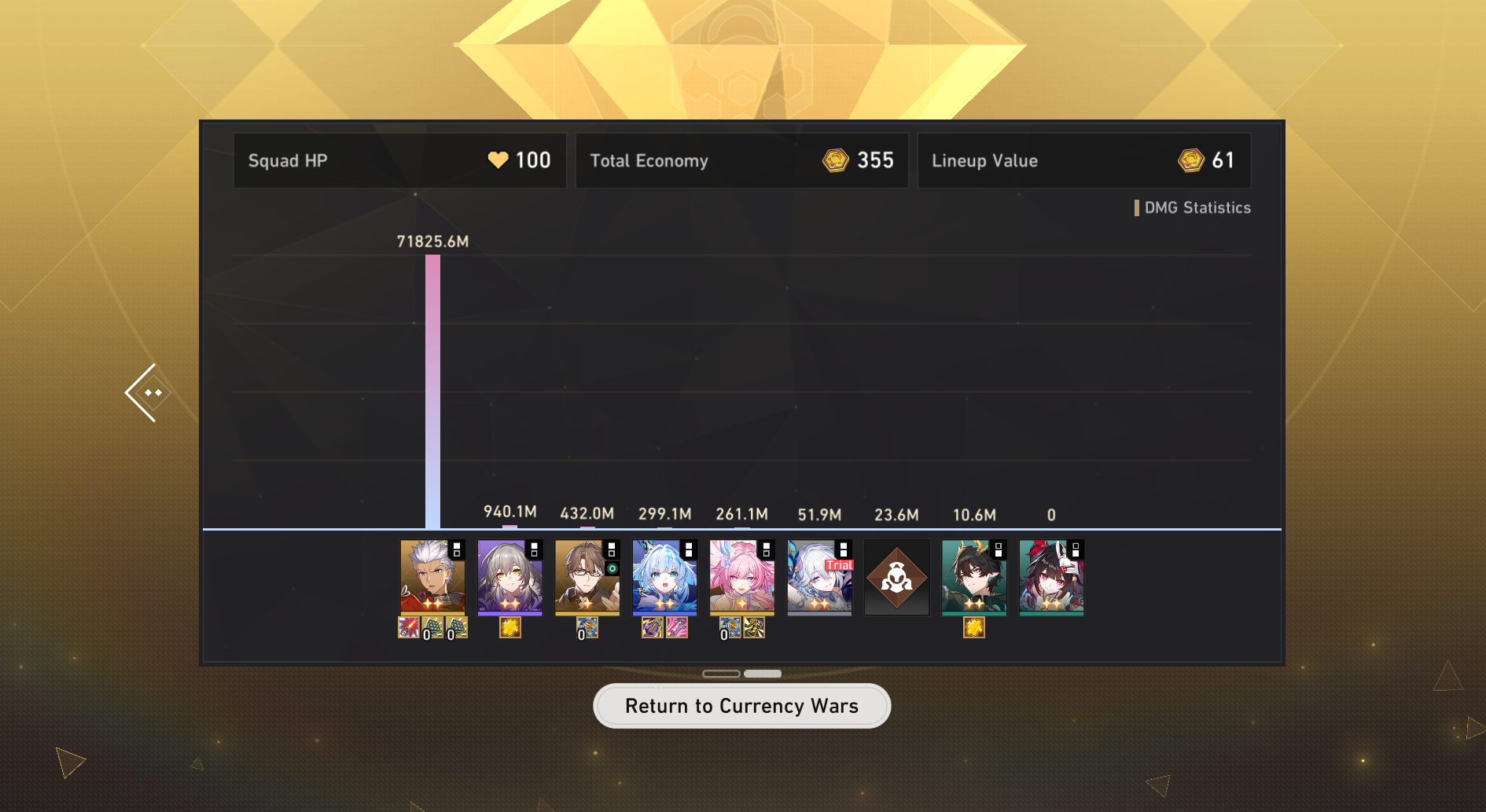 >>559103721I got gold with E1S1 fish, E1S1 BS, E0Tutorial Kafka and E0S0 Dan PeterCan shave off sigs with sampocones and better relics