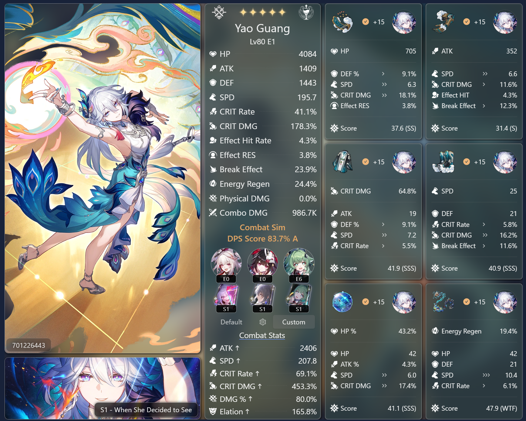 >>559144270200 speed is the requirement to get 3 turns in 150 AV and 2 turns every 100 AV cycle after. Yao Guang needs as many turns as possible purely to cycle her ult and spam Aha Instants