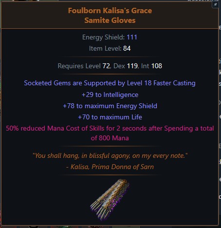 >>559168065If this were 3.13 I would be telling /poeg/ to play CoC Assassin w/ Ice Nova. Unfortunatley the gear needs old school harvest crafting to finalize those boots and gloves. This didn't even account for all the ailment immunities. YOu woul aslo have to trade your belt slot for a Shaper influenced belt with CDR over a headhunter or mageblood. Better to play some -stacker build.