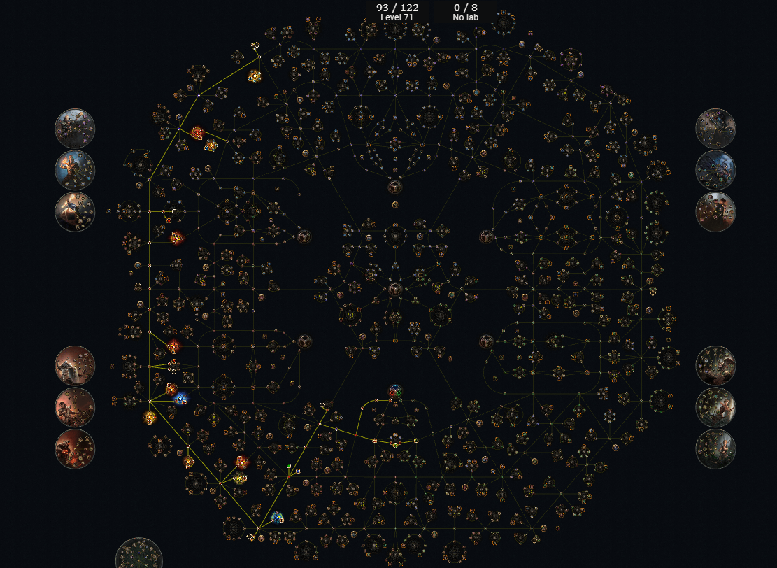 >>559170851the vast majority of all endgame builds at this point just path to as many jewel sockets as possible because clusters and uniques are so ridiculously efficient.the #1 change to improve build diversity would be making it so cluster jewels cannot be sockered into other clusters (then you can buff small and medium clusters as compensation since they now compete with large) but I'm pretty sure the playerbase would fucking riot if that happened.looking at a build and seeing it runs 3x Voices for 9x medium clusters and then a bunch of unique jewels like Red Dream, Stormshroud, Watcher's Eye is so eyerolling