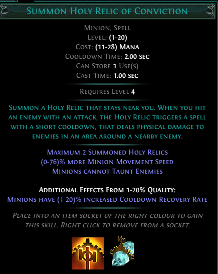 >>559167802since your own damage is such a negligible part of it and it lacks dom blow/absolution giving 300% self damage from increased minion damage, the best comparison is probably Holy Relic of Conviction. your own strikes and attacks will be doing like 1% of damage, the only reason you're swinging is to trigger the 3 minions to attack since their attacks only happen when you hit.