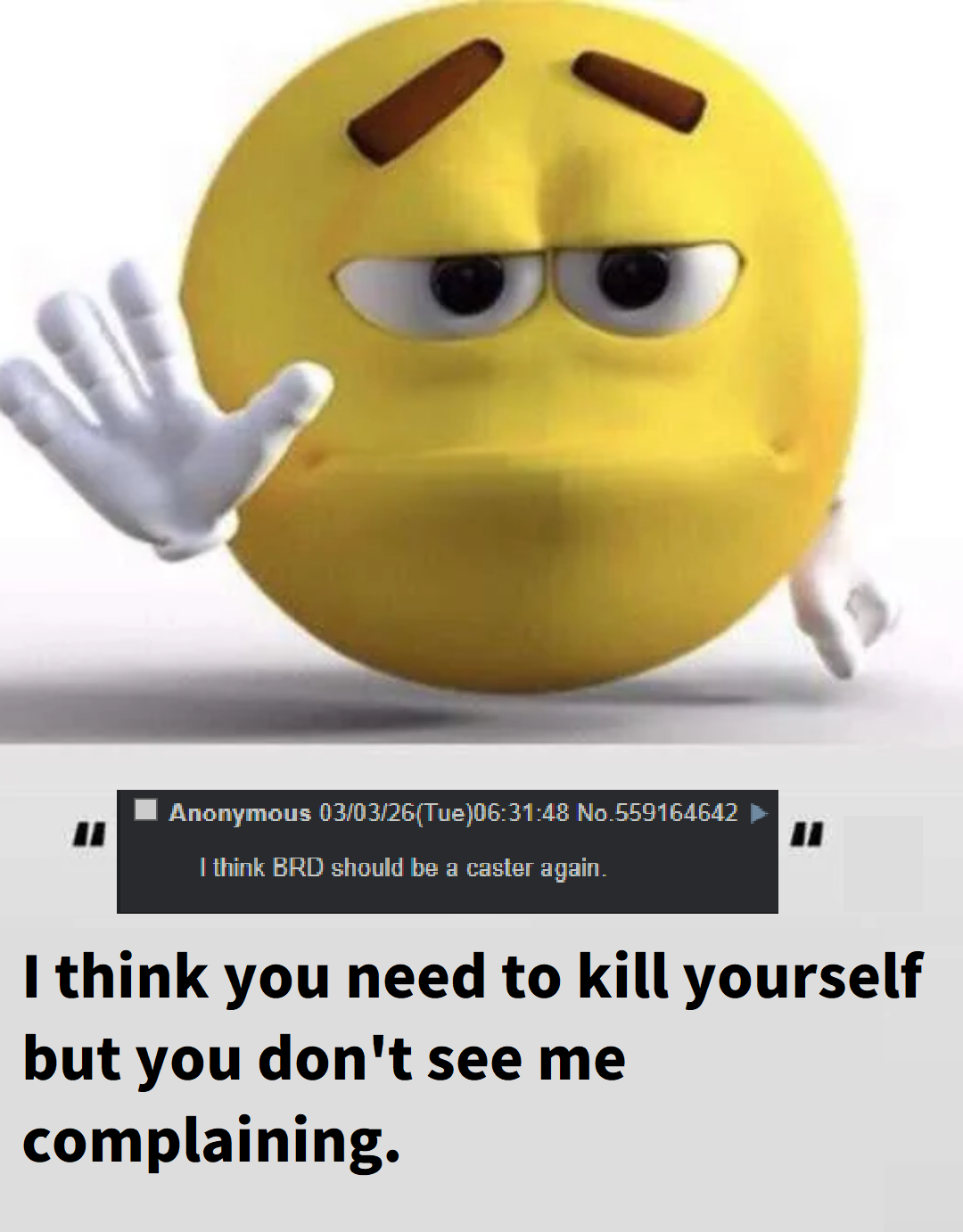>>559156167You talking about yourself or vagueposting about someone you think is posting and they live rent free in your head?