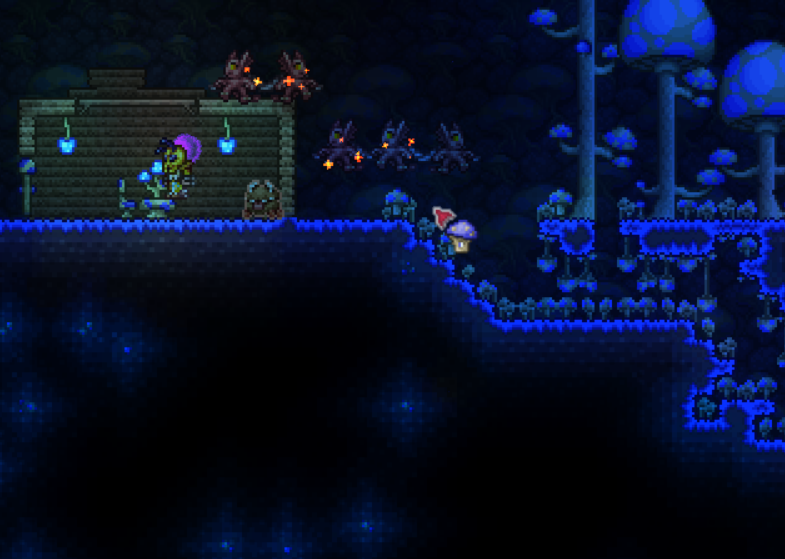 >>559315751You can buy mushroom solution from the mushroom NPC and use the clentaminator in the surface jungle for a quick mushroom biome.