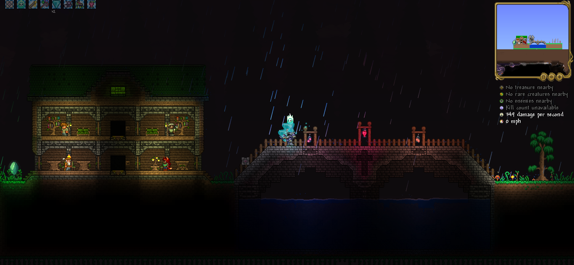 >>560063956turtles have to spawn in water so I would assuming things spawning on the platform are taking up spawn slotsI'd put your settlement of 3 npcs on the beach and maybe add a water candle to increase critter spawns>>560064034>What's the easiest way to get them nowadays?I concur with >>560064323slime mount invincibility machines died back in 1.4, the fastest way I saw pre-hm was a minishark with rapid and a crit-based build, since crits do 2 dmg instead of 1 against the DG's 9999 defense (or at least, that's how I remember it working). if you're using post-pre-hm gear, then anything that doesn't pierce and hits rapidly will work - something like the chaingun with crystal bullets as anon suggested