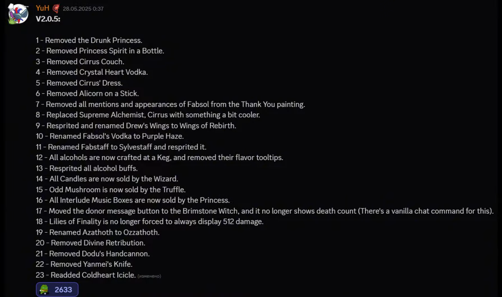 >>560046368>removed well-fed>pumpkin pies now last for 2 minutes>melee damage buff 10% across the board>-0.05% melee speed across the board