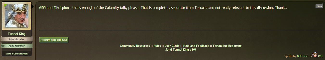 Bondage Edition>-1.4.5-<>Changelogterraria.wiki.gg/wiki/1.4.5>-Multiplayer-<>Public Serversterraria-servers.com>-Game Information-<>Starter Guideterraria.wiki.gg/wiki/Guide:Getting_started>Official Wikiterraria.wiki.gg>-Visual guide to blocks, furniture themes, paints, and more-<pastebin.com/nj15NkLiimgur.com/Wd11atD.png>-World Seeds-<docs.google.com/spreadsheets/d/1oi_oni_jKe83MZFx5N-B-WkYQUpvZhRM3OFwID4X9hk>-Game tools-<>TShock - Server clienttshock.co>Web-based inventory editoryal.cc/r/terrasavr>TerraMap - World viewerterramap.github.io/>TEdit - World viewer/editorbinaryconstruct.com/tedit/>Omnitool - Creates world from image, unique world generation optionsgithub.com/Berserker66/omnitool/releases>-Modding-<>tModLoader 1.3github.com/tModLoader/tModLoader/wiki/tModLoader-guide-for-players>Mod List - Summaries of the most recommended/popular mods (mostly outdated)pastebin.com/qh8EJmxWpastebin.com/S8Js21fq>Prevent mods auto-updatingimgur.com/a/h5rwo4E>/tg/ Texture Packspastebin.com/Q8P4WxHH>/tg/ Risqué Textures Archivemega.nz/folder/0gpBHCYb#X-ODIRk37bMPDfLc2aW-nQ>Player Resource Bars and Visual Radar ports to 11.x (PRB appears to be somewhat buggy in MP, VisualRadar works fine)pastebin.com/QN12Ltig>Autohotkey Terraria Autoclickermega.nz/file/fExgUaRY#0wfxlVdBLDYUMfrH-qfI_0CSWnUShbeNKxPQS7FPRMY (raw: pastebin.com/mPDZRst1)>Particle lag fix (Mac)github.com/Candygoblen123/TerrariaArmMac>-Other neat stuff-<>Fancy buildsmega.nz/#!bBhX0QzY!DaLnBdlZzVM7QOMKDpiCZM2GUaH0SQFDhe-RMNBWeWsforums.terraria.org/index.php?threads/terramonoliths-1-4-journey-builds-vanilla-terraria-no-mods.97910/>Best Adventure Mapspastebin.com/9hbZv51V>Class setupsdrive.google.com/drive/folders/1BOFcsgKl2gvc7IaFYKHusIQYlhtMj5bm>-OP pasta-<>Please use the info from this link when creating new threadspastebin.com/hVr6XeiDWas a little tight around the neck >>558369526