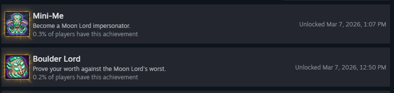 >>560119586>After doing pre-mech Fishron on get fixed boi,Impressive stuff. I thought Getfixedboi Duke was the hardest boss in the game after Getfixedboi Wall of Flesh (assuming no Imp Banners), and I did that fight post-Golem. The low surface gravity and inflated contact damage both Duke and his projectiles dealt killed me like fifteen times.