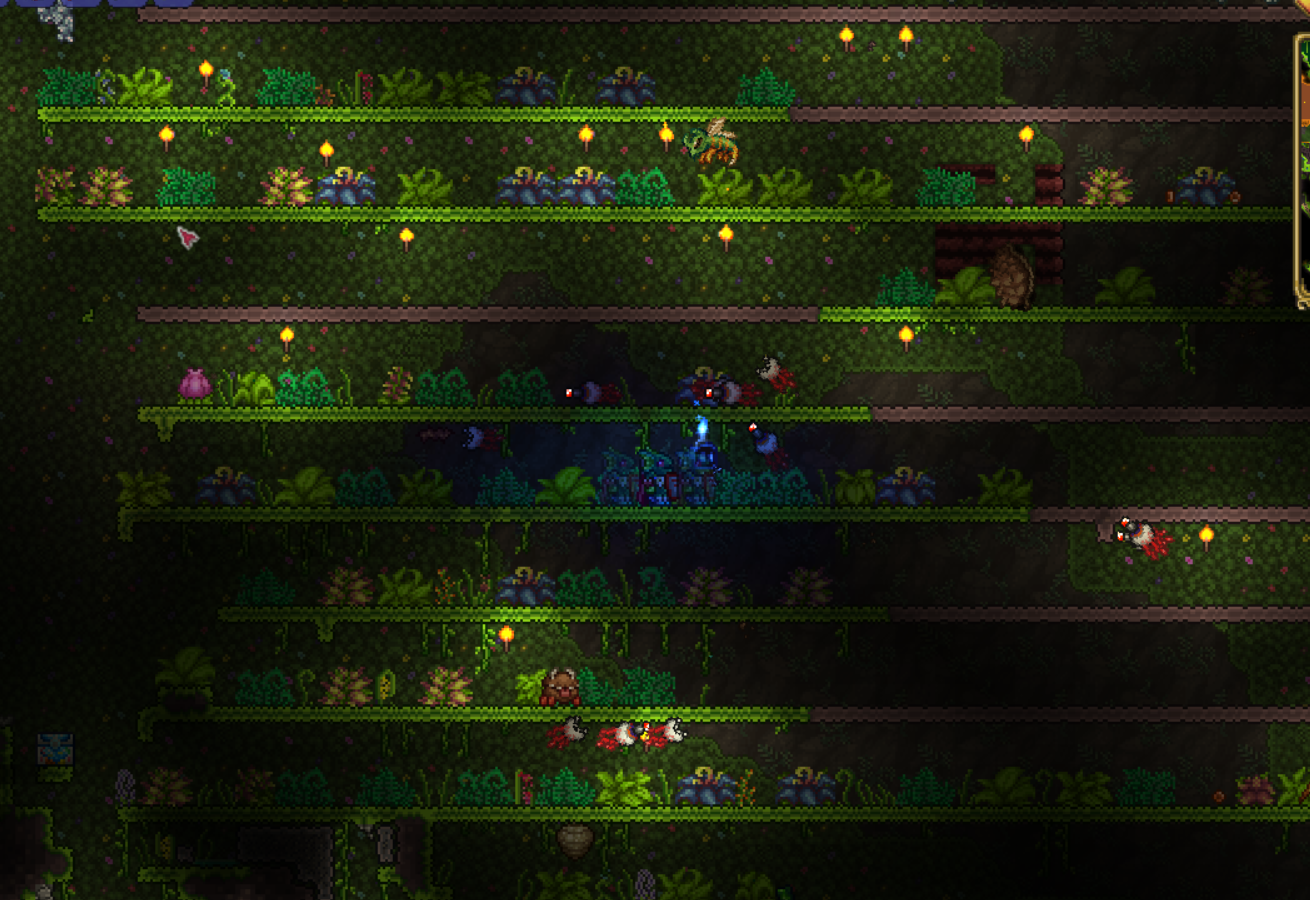 >>560175545I don't like staying in the underground jungle any longer than I have to, because it's a clusterfuck of either being shot at and poisoned from offscreen, or trying to kill an enemy blocking your path that hides within blocks. Anything I can do to minimize my time spent there while still being able to reap its rewards, I'll do.