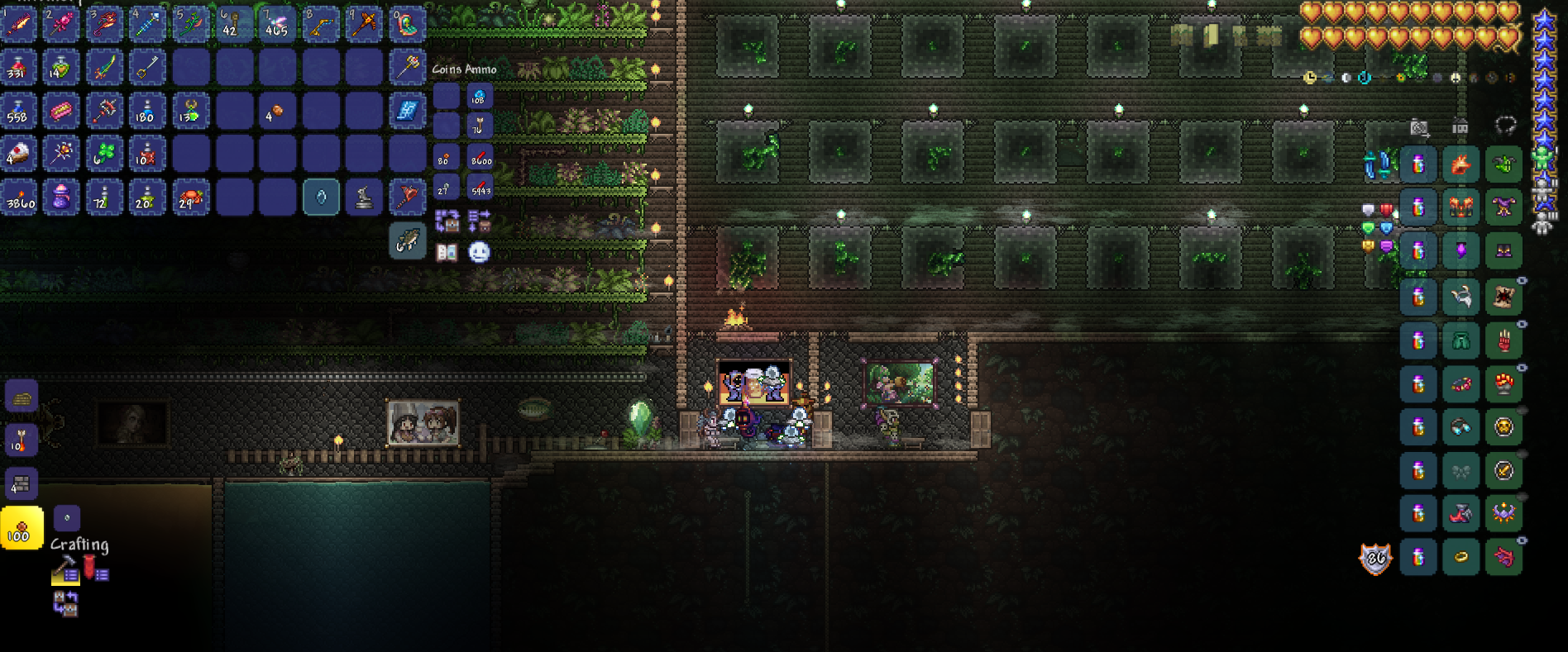 >>559320067You need more Living Wood lamps. You have like 30 there, but at least 50 within a 75 block radius are recommended for the best Golem fighting experience.