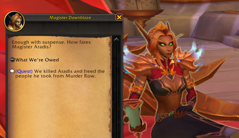 I miss the faction war. They never did it justice, and wouldn't in the future either if they tried. But I'd take the hostilities over boring characters like Xal'atath any day. I know I'm in the minority though so it is what it is. Sick of Alleria, sick of Xal'atath, already sick of Arator,