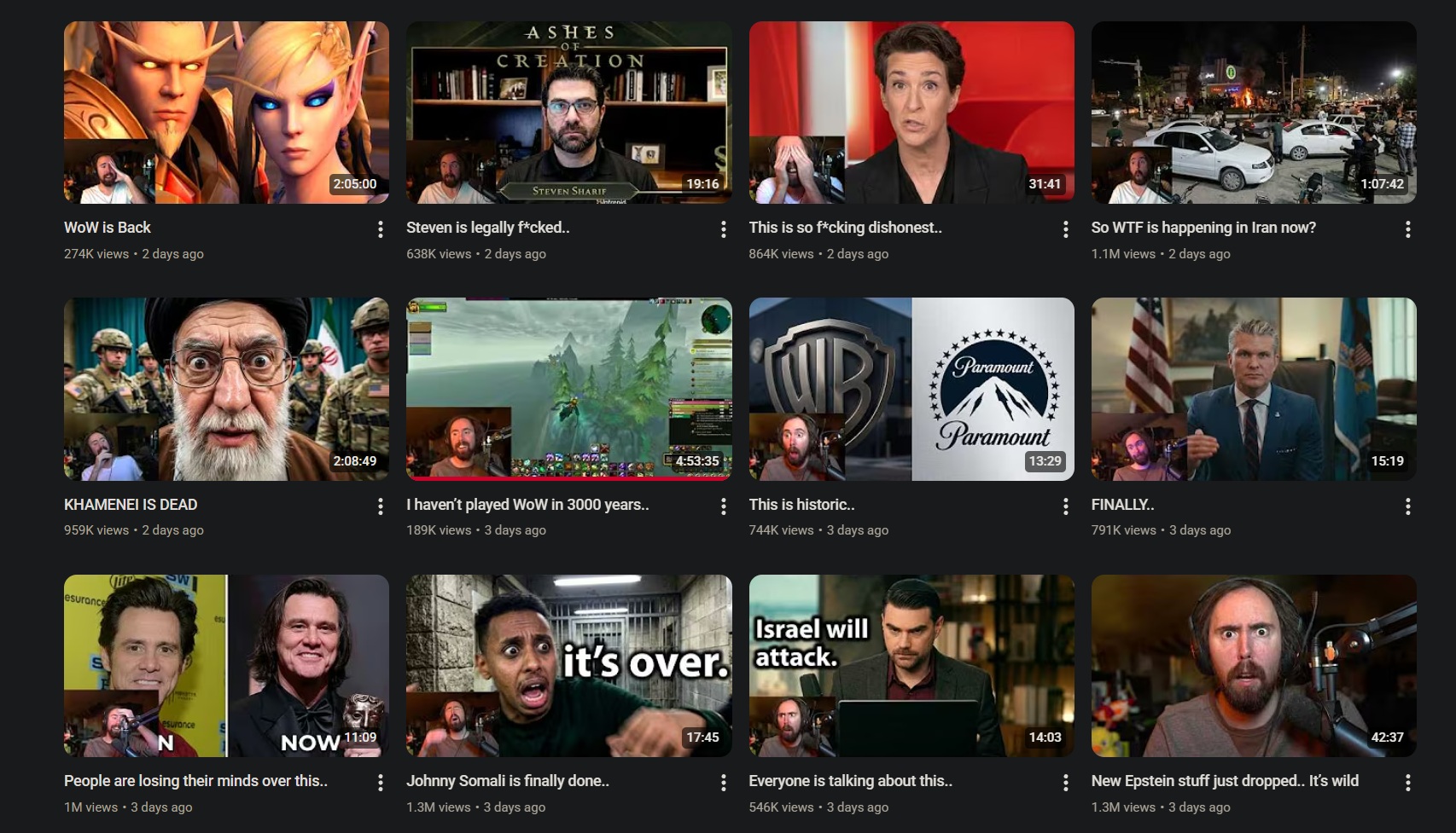 >thread quality has been horrendous the past week>check Asmons channel>multiple WoW videos in a couple of daysReallyMakesYouThink