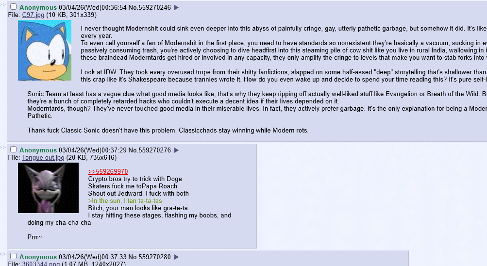 The only kind of person who would believe Sonic has had sex is someone who can't let go of ShitAM. You people are embarrassments.