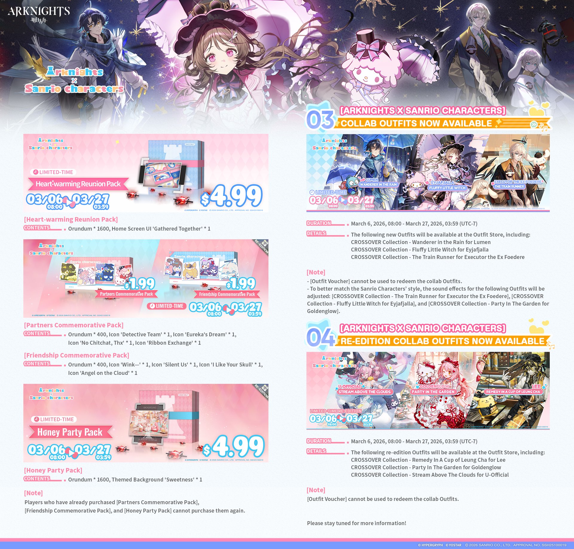[2/27-3/13][Standard]6* Sniper Fiammetta, 6* Defender Penance (Shop), 5* Vanguard Cantabile, 5* Specialist Spuria, 5* Caster Harmonie (Shop)