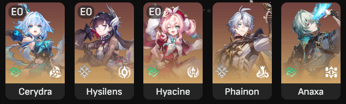 I rolled Cerydra and don't own Phainon or Anaxa.
